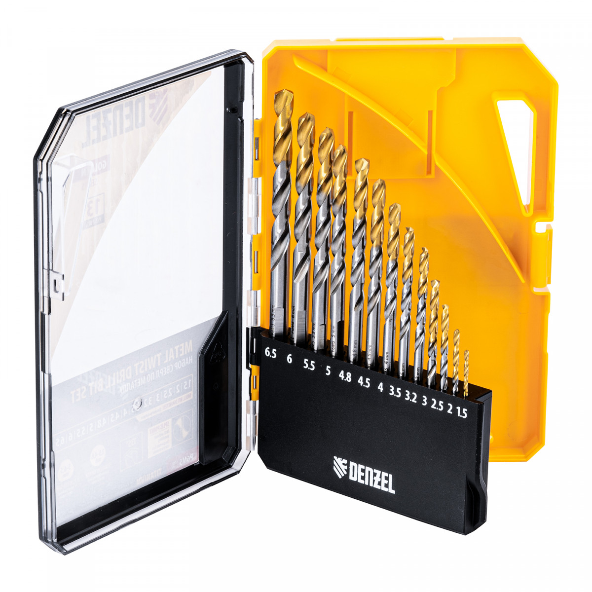 Набор сверл по металлу, 1,5-6,5мм, Р6М5-TiN, Golden Tip, 13 шт Denzel