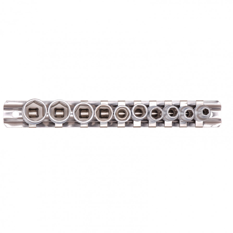 Головка торцевая, 4 мм - 1 штГоловка торцевая, 5 мм - 1 штГоловка торцевая, 6 мм - 1 штГоловка торцевая, 7 мм - 1 штГоловка торцевая, 8 мм - 1 штГоловка торцевая, 9 мм - 1 штГоловка торцевая, 10 мм - 1 штГоловка торцевая, 11 мм - 1 штГоловка торцевая, 12 мм - 1 штГоловка торцевая, 13 мм - 1 штМеталлическая плашка-держатель - 1 шт