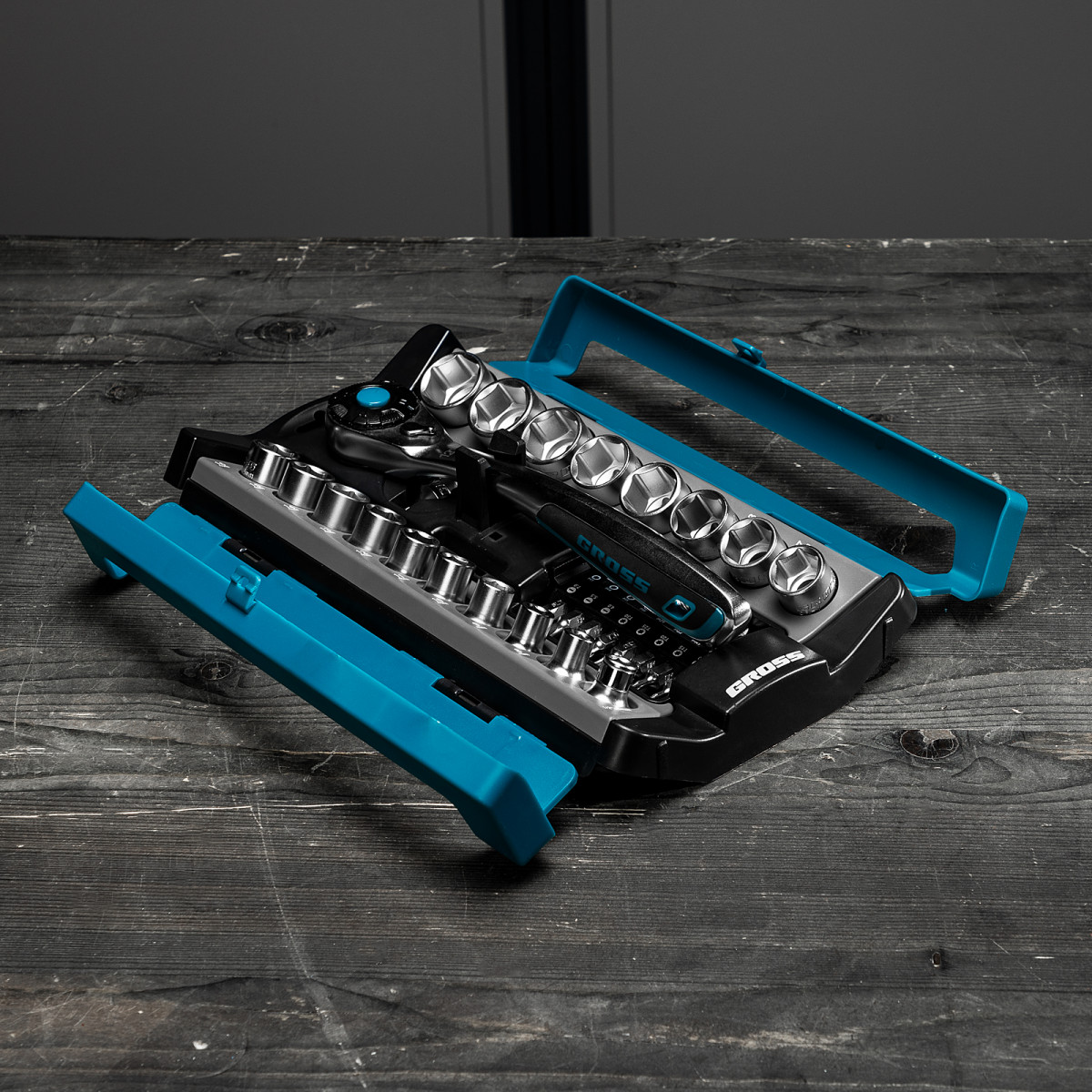 Набор торцевых головок, трещотка 120 зубьев, 1/2", CrV, 36 предметов Gross