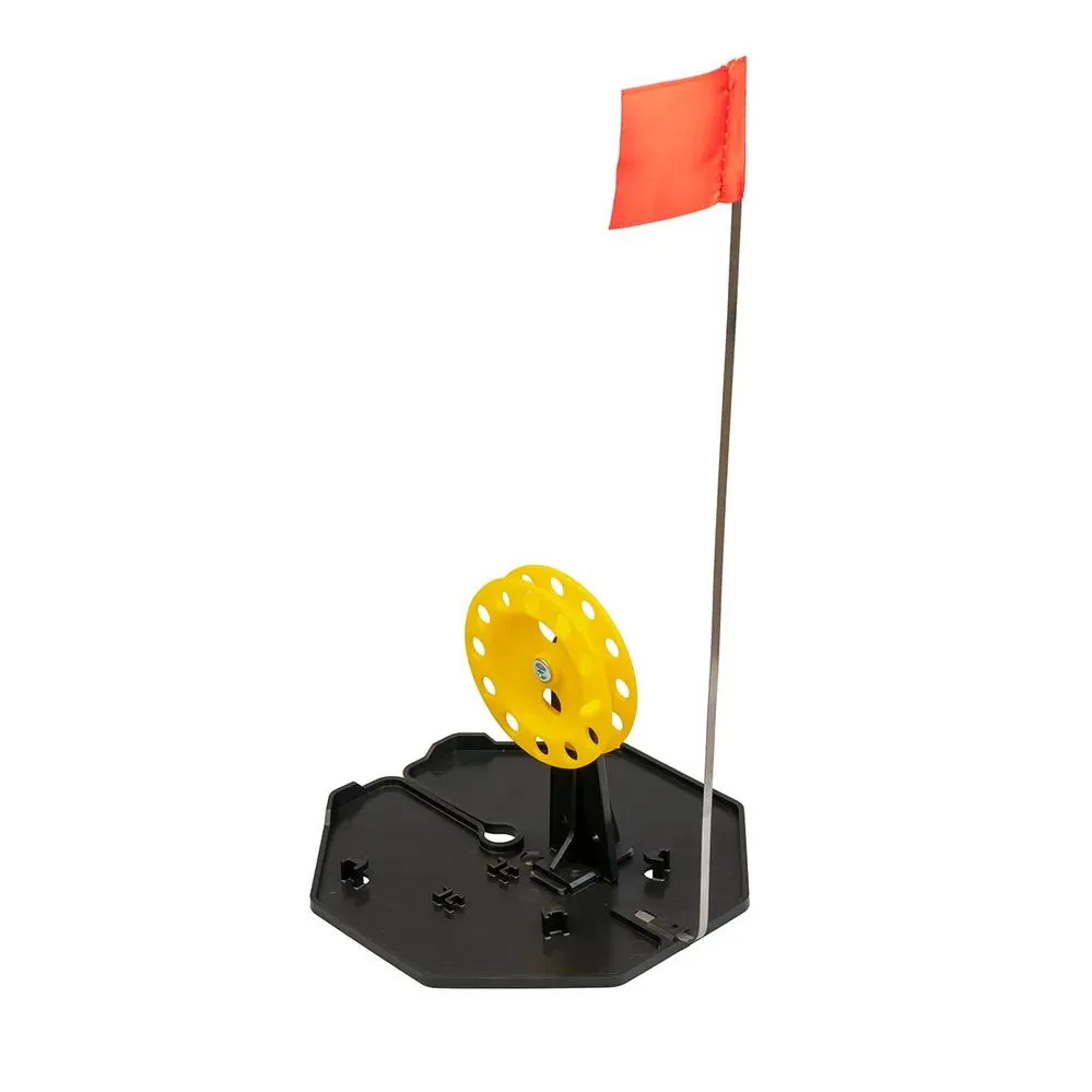 Набор жерлиц на подставке Тонар ЖЗ-03 d-210 мм, катушка d-85 мм, 10 шт 00000136346 используется для подледной ловли рыбы.