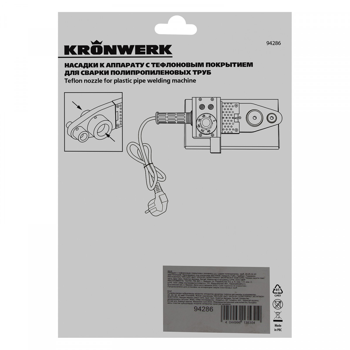 Насадки с тефлоновым покрытием к аппарату для сварки полипропиленовых труб, D 20 25 32 40 мм Kronwerk