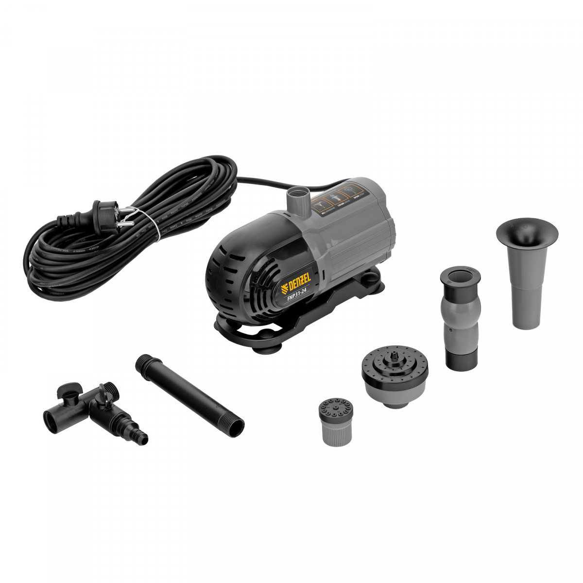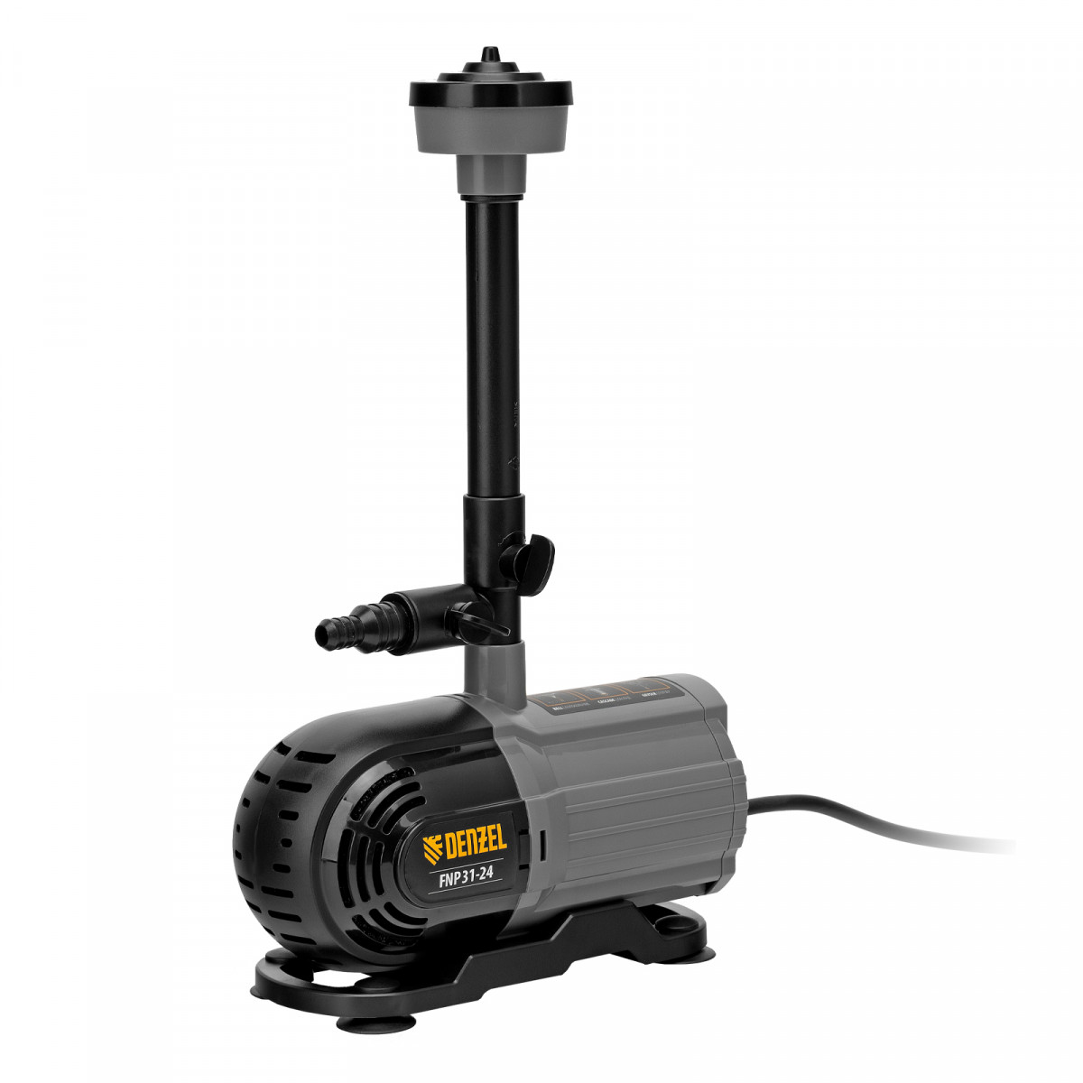 Насос фонтанный FNP31-24, 31 Вт, подъем 2,4 м, 1500 л/ч, колокольчик/2 каскада/гейзер Denzel
