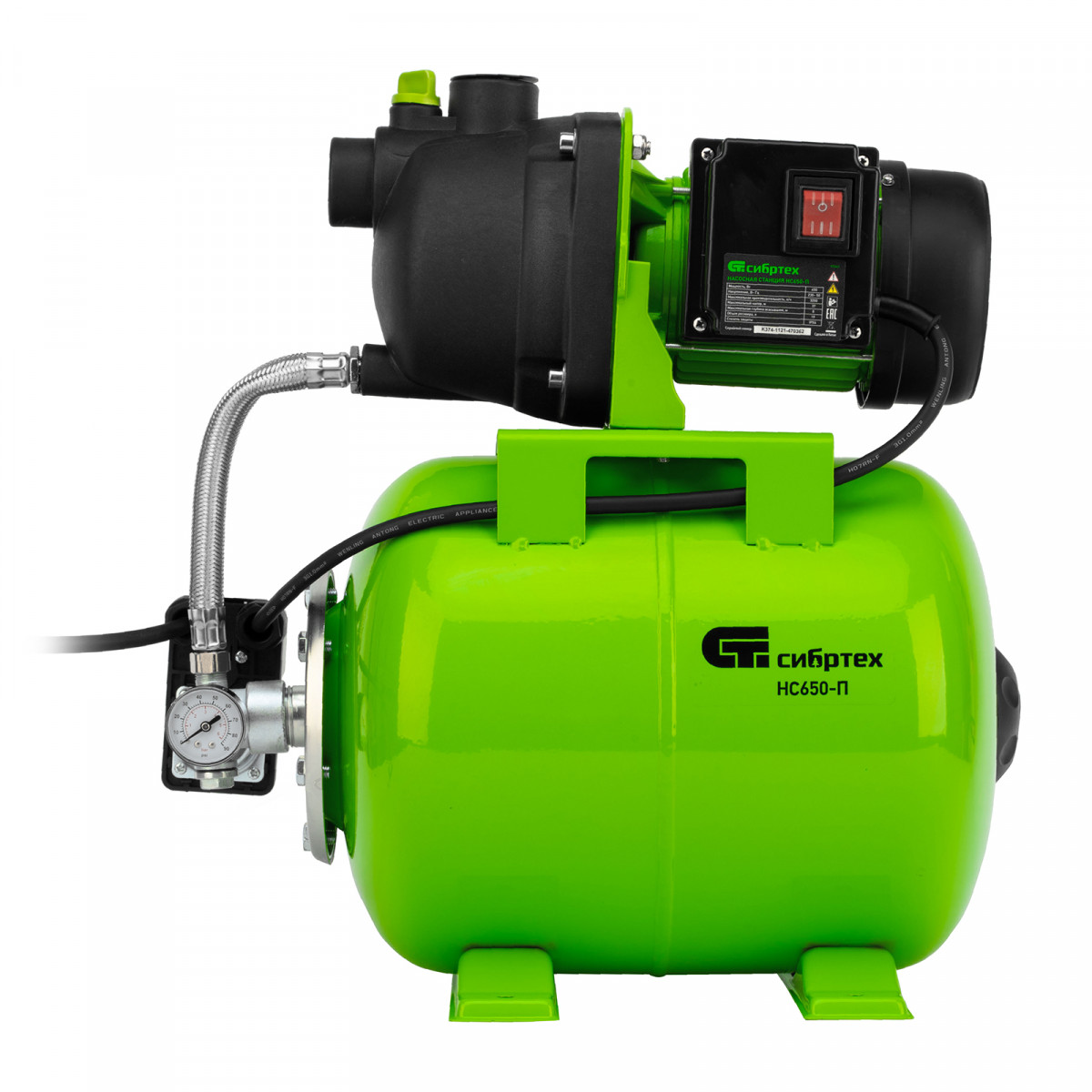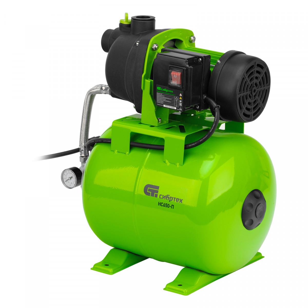 Насосная станция НС650-П, 650 Вт, напор 37 м, 3200 л/ч, ресивер 19 л Сибртех