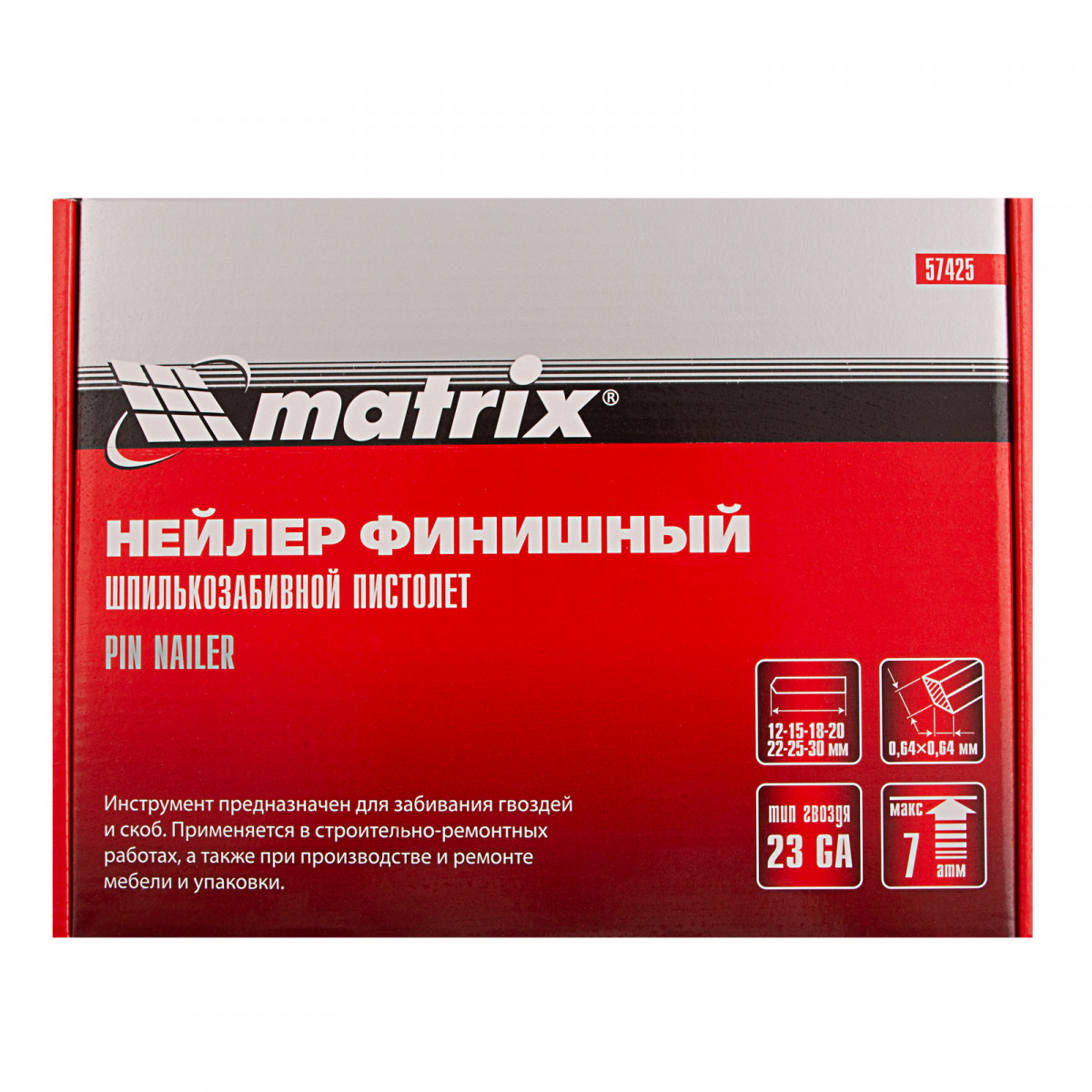 Нейлер финишный, шпилькозабивной пистолет, пневматический, гвоздь 23GA D 0.64 мм длина 10-30 мм Matrix