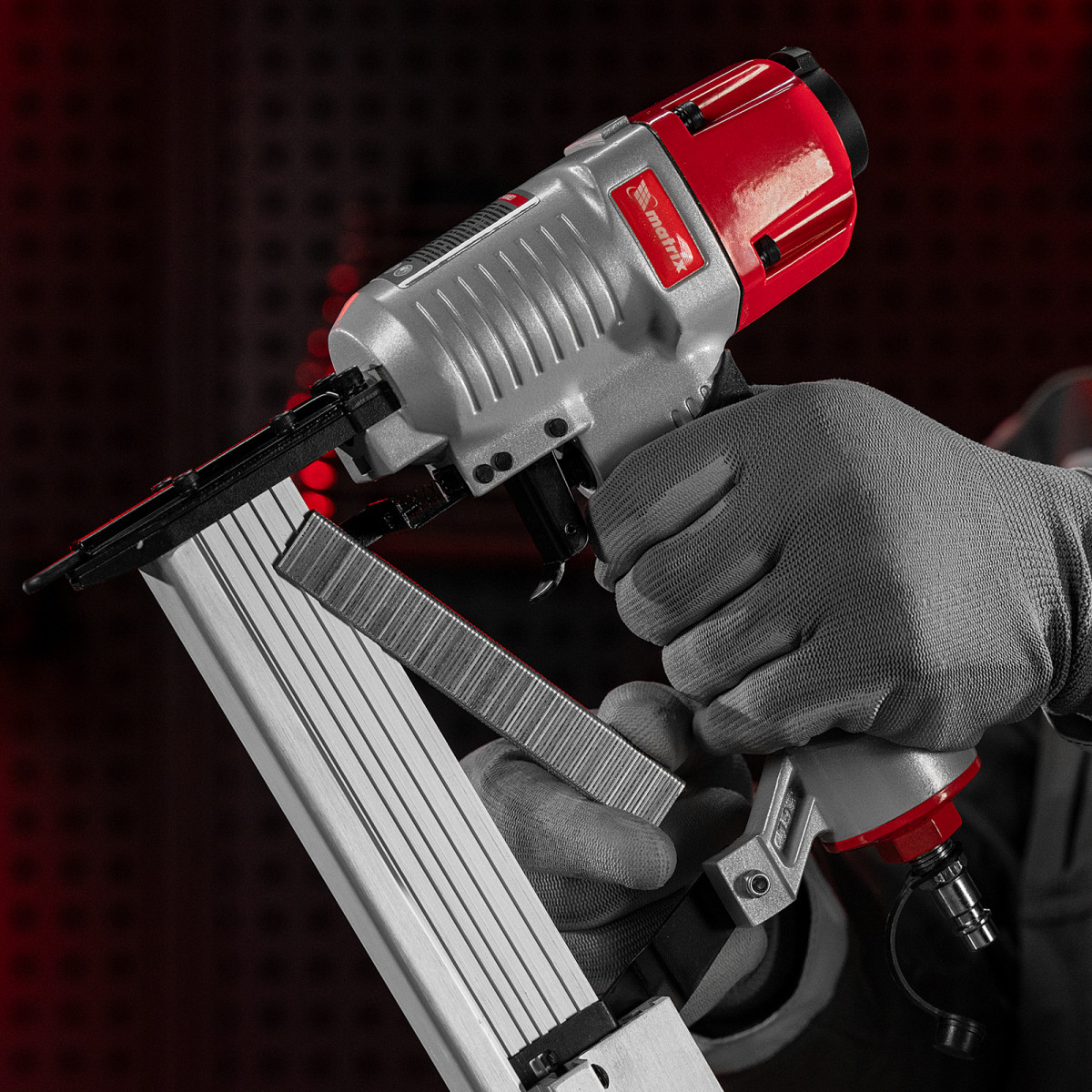 - Малый вес 1,33 кг — длительная работа со степлером-нейлером не вызывает дискомфорт.