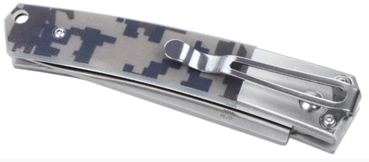Та часть рукоятки, что ближе к клинку тоже изготовлена из металла. А дальше используются текстурные пластиковые накладки. Для Ganzo G7361 был выбран композитный стеклопластик, который еще называют G10. Его отличительные черты — прочность, долговечность, невосприимчивость к различным негативным факторам внешнего воздействия. Модель выпускается в трех вариантах — с рукояткой черного, зеленого или же камуфляжного цвета.