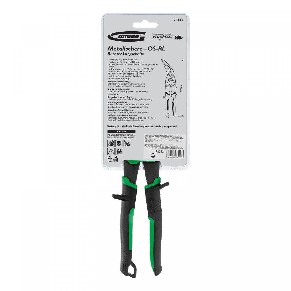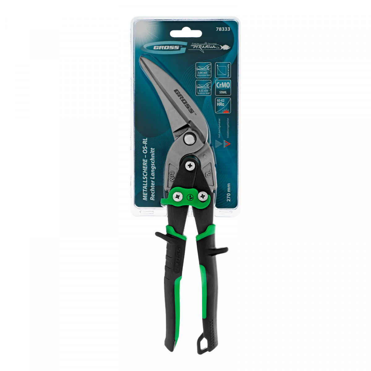 Ножницы по металлу "Piranha", 270 мм, прямой и правый проходной рез, сталь СrMo, двухкомпонентные рукоятки Gross