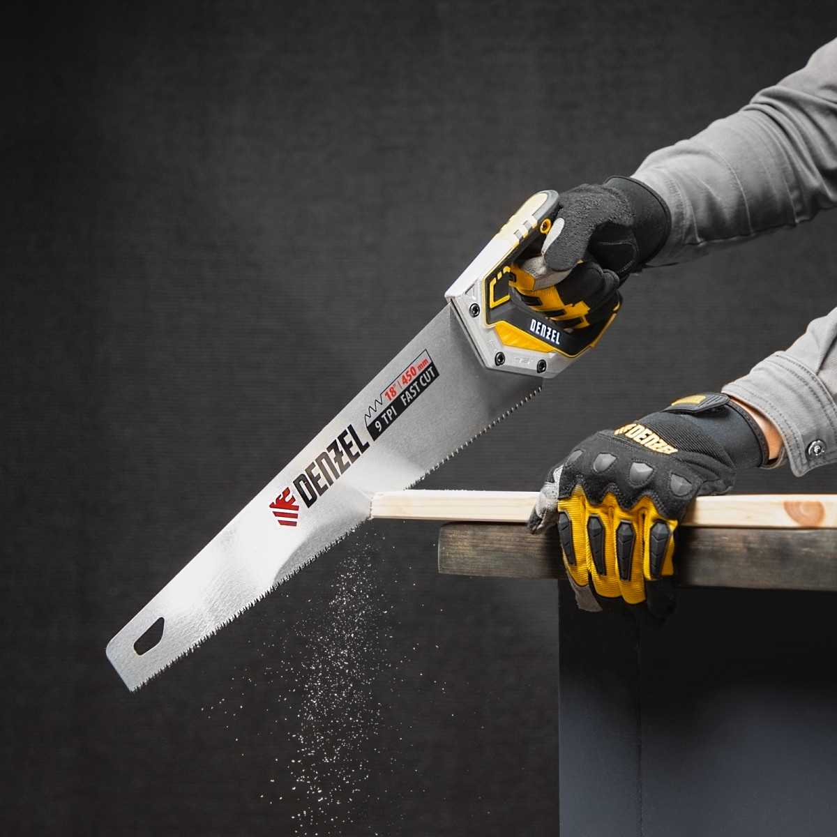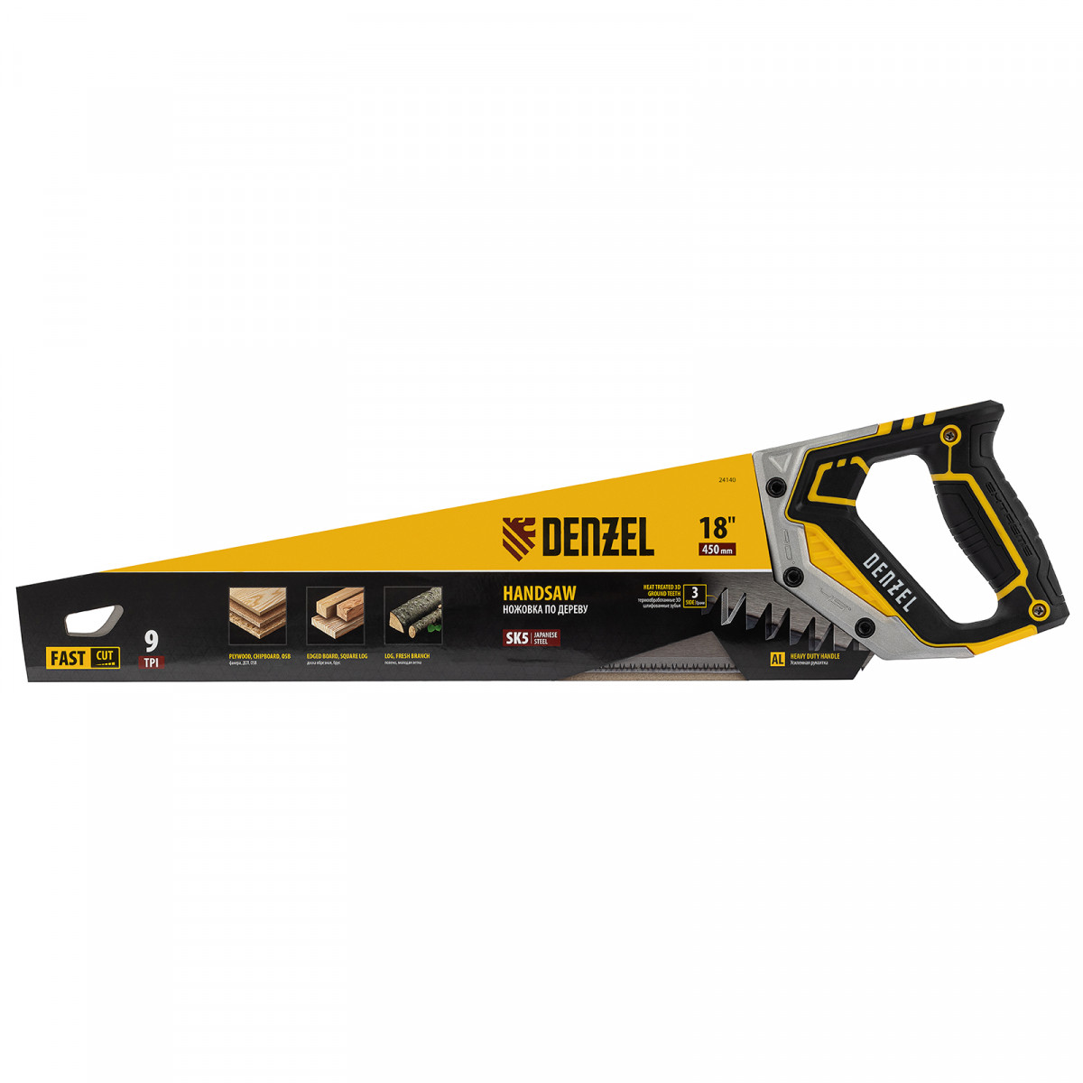Ножовка по дереву, 450 мм, 9 TPI, зуб 3D, металлопластиковая рукоятка Denzel