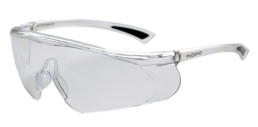 Современные легкие универсальные очки из поликарбоната с панорамным защитным стеклом, предназначены для защиты глаз спереди, сверху и с боков от механических воздействий, абразива, УФ-излучения.