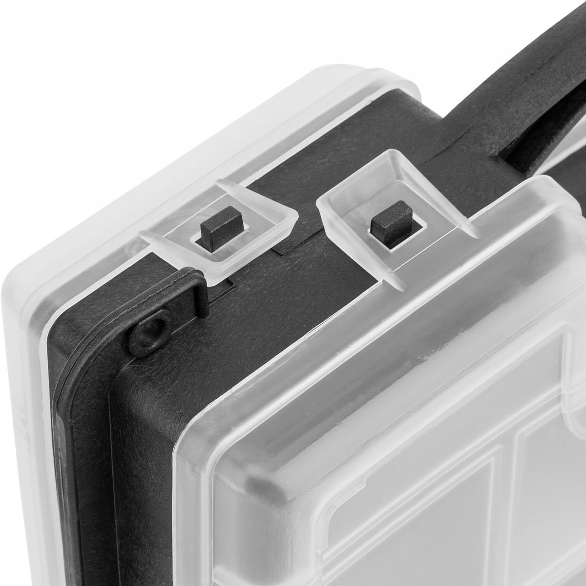 - Благодаря прозрачной крышке можно быстро просматривать содержимое органайзера.