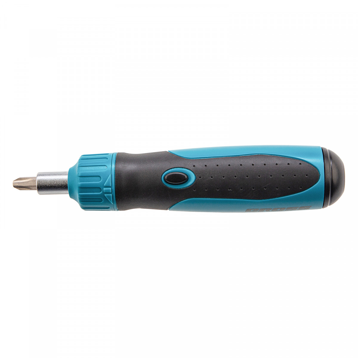 Реверсивная отвертка Gross 11611 с механизмом Smart Push комплектуется 12 битами из стали S2 с хвостовиком 1/4 дюйма для работы с крепежом типа PH, SL и TORX. За счет реверсивного механизма повышается скорость проведения работ. Отвертка универсальна, т.к. с ней можно использовать любые биты длиной 25 мм с хвостовиком 1/4 дюйма. Она будет полезна не только частным мастерам, но и профессионалам.