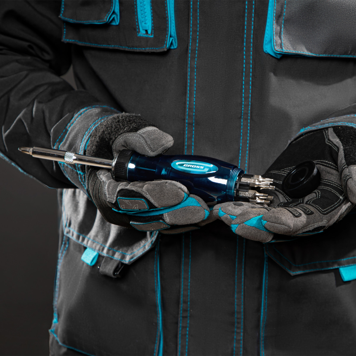 Реверсивная отвертка Gross 11603 с удлинителем и трещоткой на 72 зуба комплектуется 12 сменными битами из стали S2 для эффективной работы с саморезами, винтами и другим крепежом. Она пригодится при проведении монтажных, строительных, ремонтных работ. Для расширения возможностей отвертки можно использовать любые биты длиной 25 мм с хвостовиком 1/4 дюйма.
