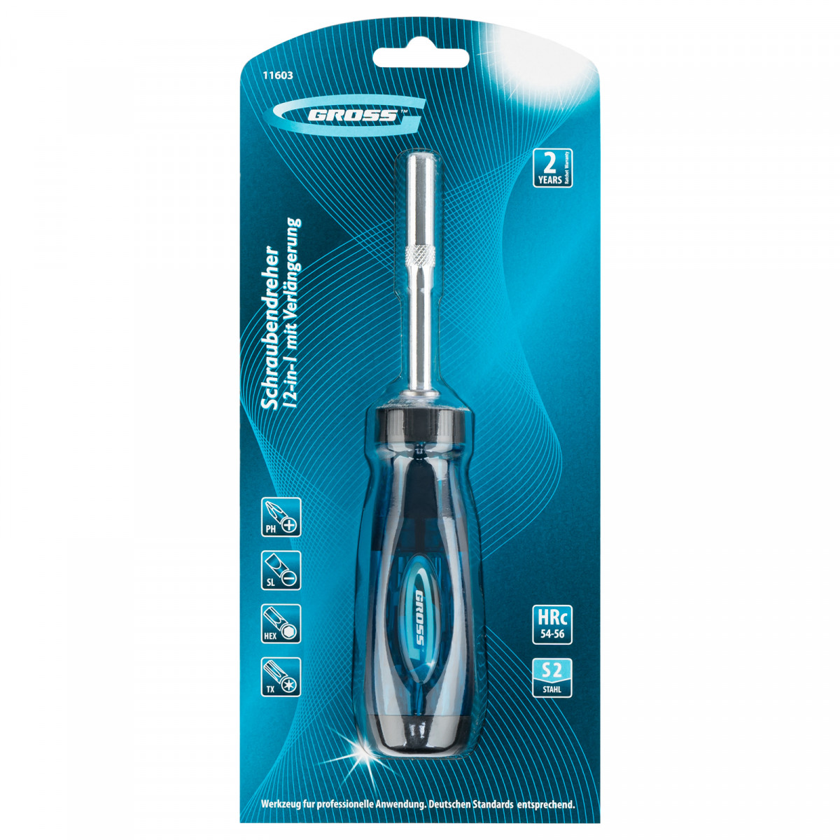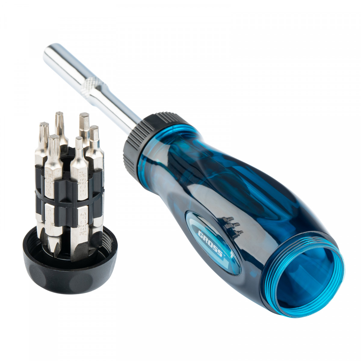 Отвертка реверсивная с удлинителем, трещотка 72 зуба, 12 шт, сталь S2 Gross