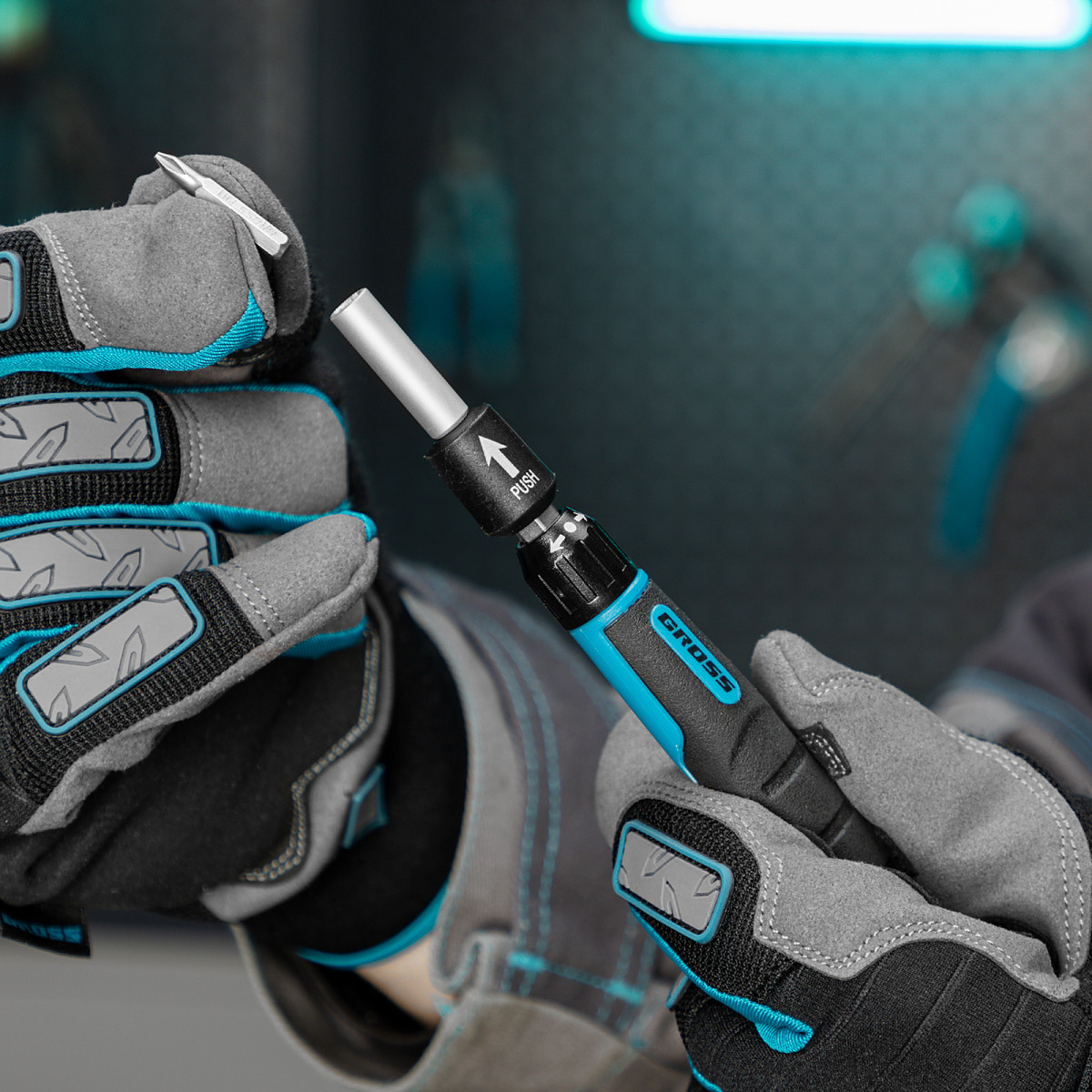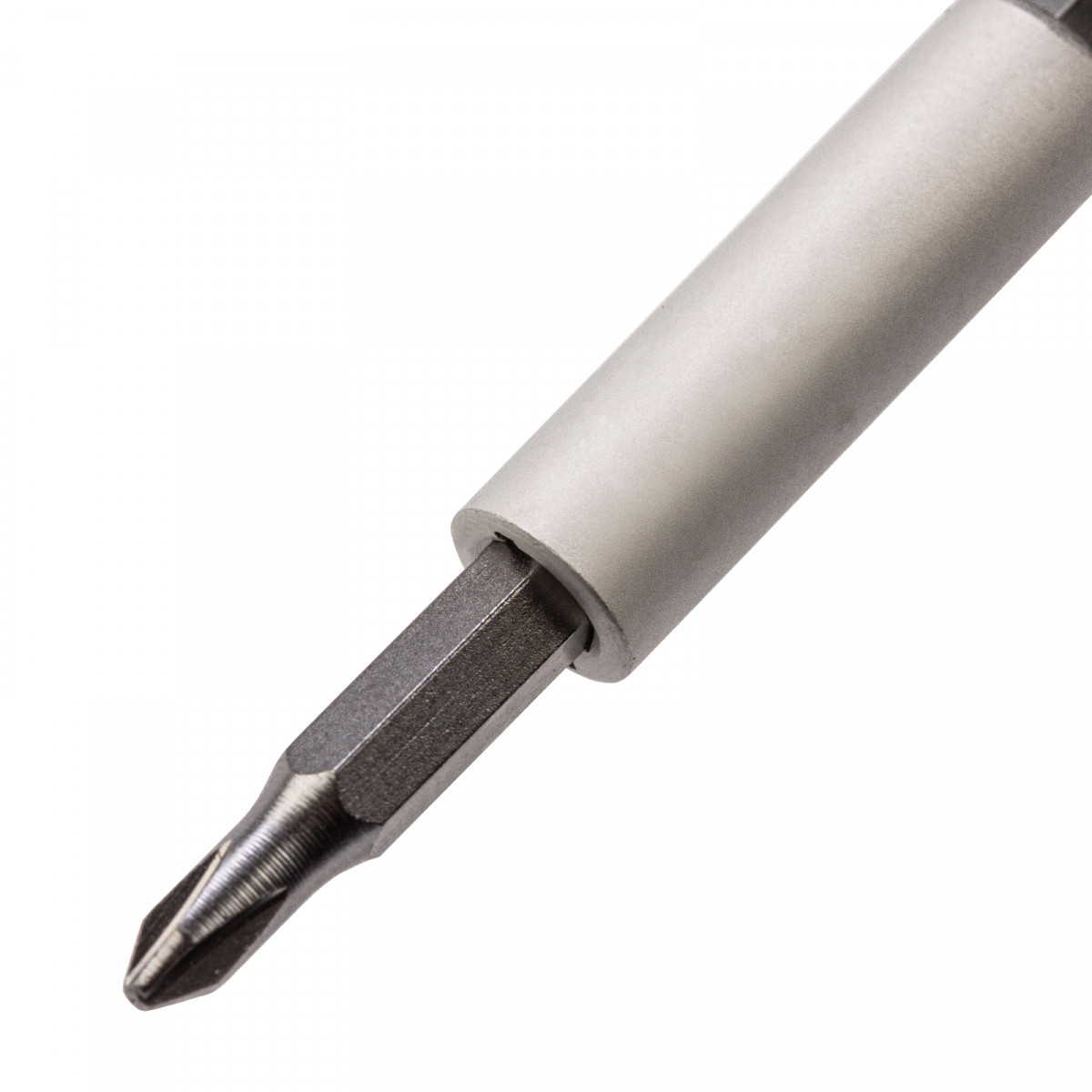 - Намагниченные биты позволяют легко доставать металлический крепеж из углублений и насаживать его одной рукой.