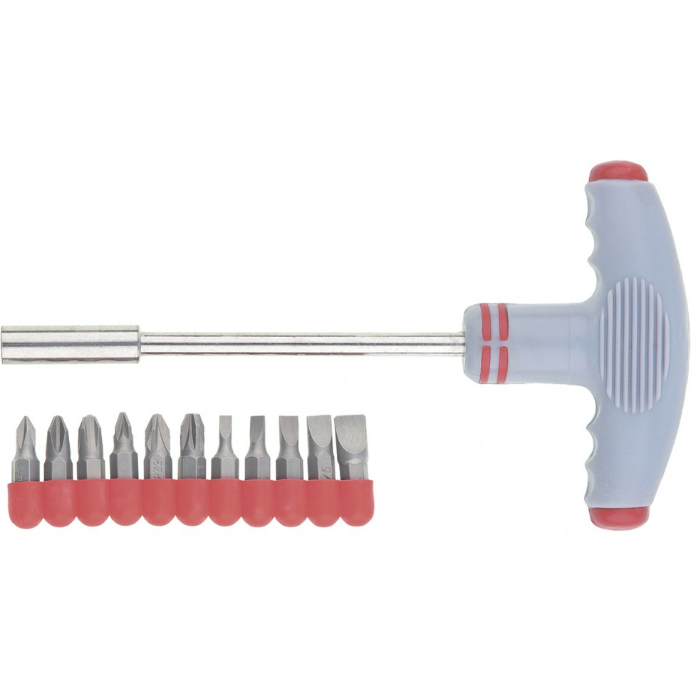 Отвертка с Т-образной эргономичной ручкой и набором бит, 11 шт. CrV//MATRIX