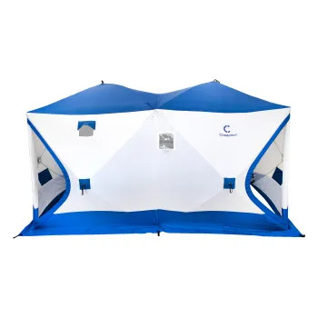 Палатка зимняя куб СЛЕДОПЫТ 3,8х1,9 м 2-х комнатная S по полу 7,2 кв.м 3 слоя цв. синий/белый