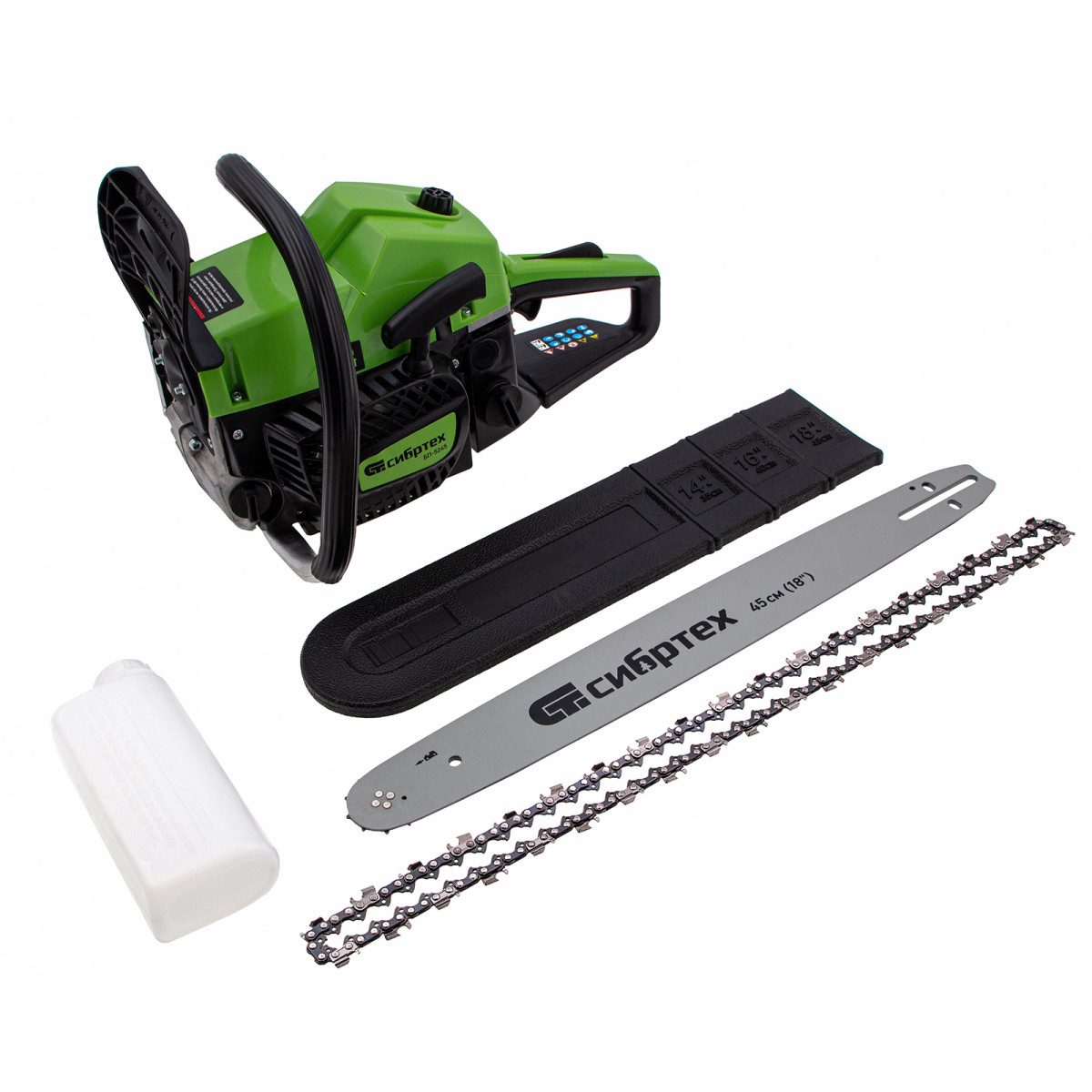 Пила цепная бензиновая БП-5245, 52 см3, шина 45 см, шаг 0.325, паз 1,5 мм, 72 звена Сибртех