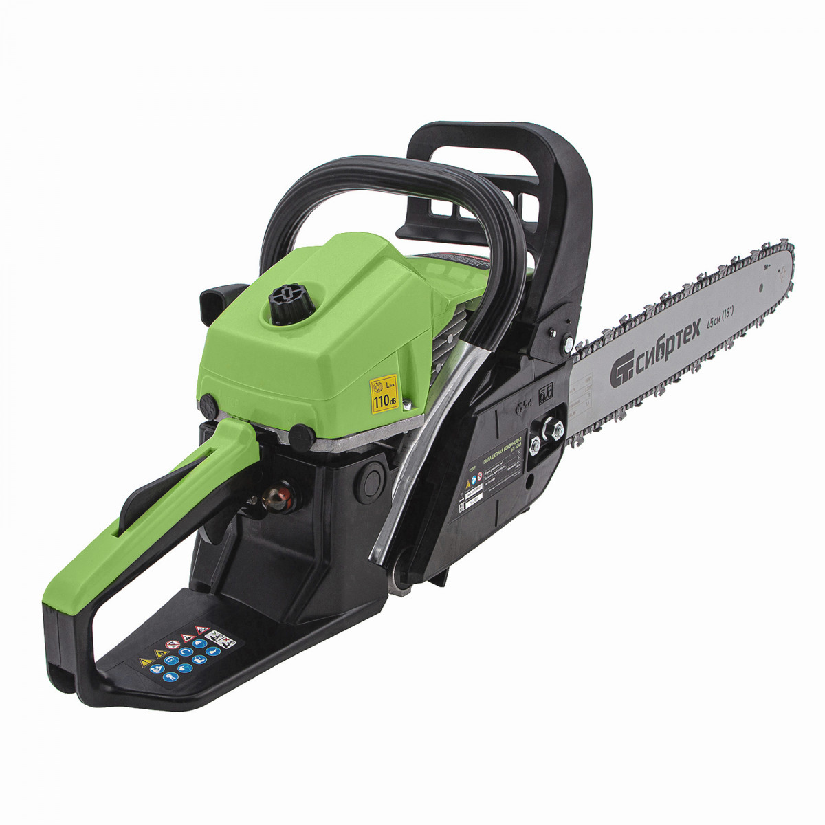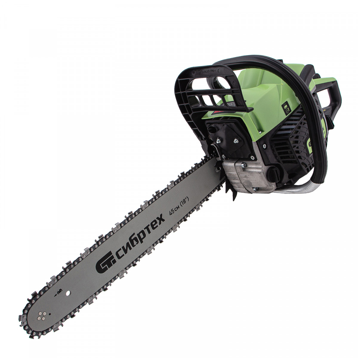 Пила цепная бензиновая Сибртех БП-5245 95209 с двухтактным двигателем объемом 52 см3 и мощностью 3,3 л.с предназначена для распиловки древесины различных пород, заготовки дров, спиливания веток и крупных сучков. Пригодится во время ремонта, строительства, благоустройства садового участка и при выполнении бытовых задач. Мощный и экономичный двигатель в сочетании с качественной шиной длиной 45 см (цепь с 72 звеньями с шагом 0,325 дюйма и шириной паза 1,5 мм) позволяют достичь наилучших результатов да.