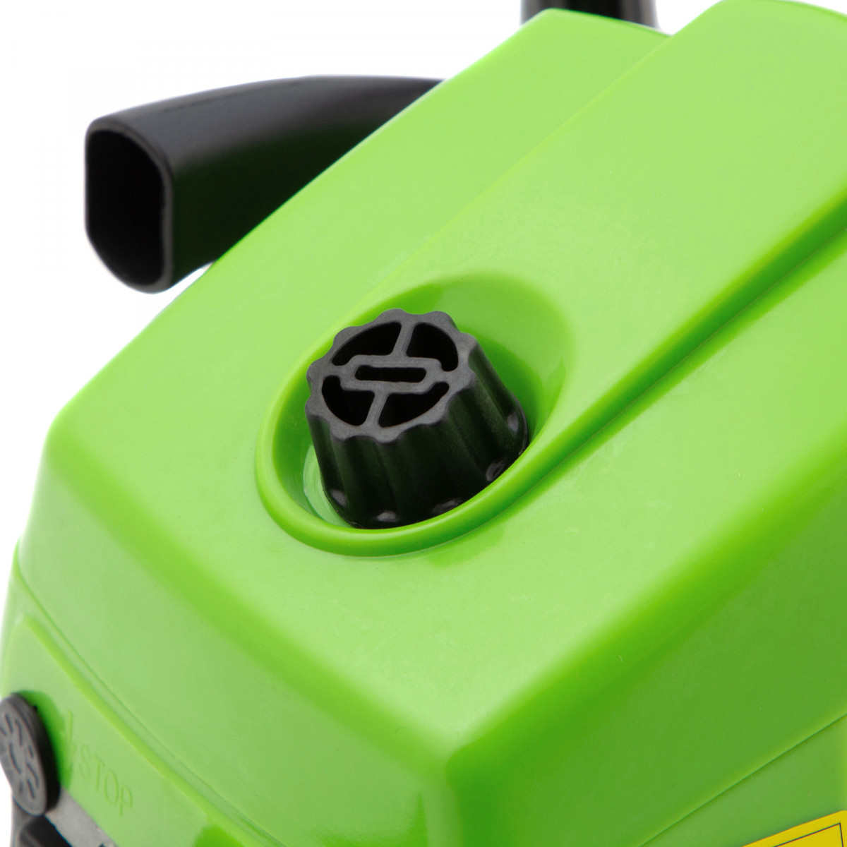 - Безопасность — пила оснащена блокировкой от случайного запуска и тормозом цепи, который моментально срабатывает при отскоке инструмента.