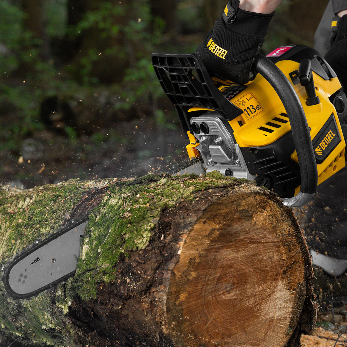 • Безопасная работа — блокировка от случайного запуска и моментальное срабатывание тормоза цепи при отскоке пилы снижают вероятность получения травм.
