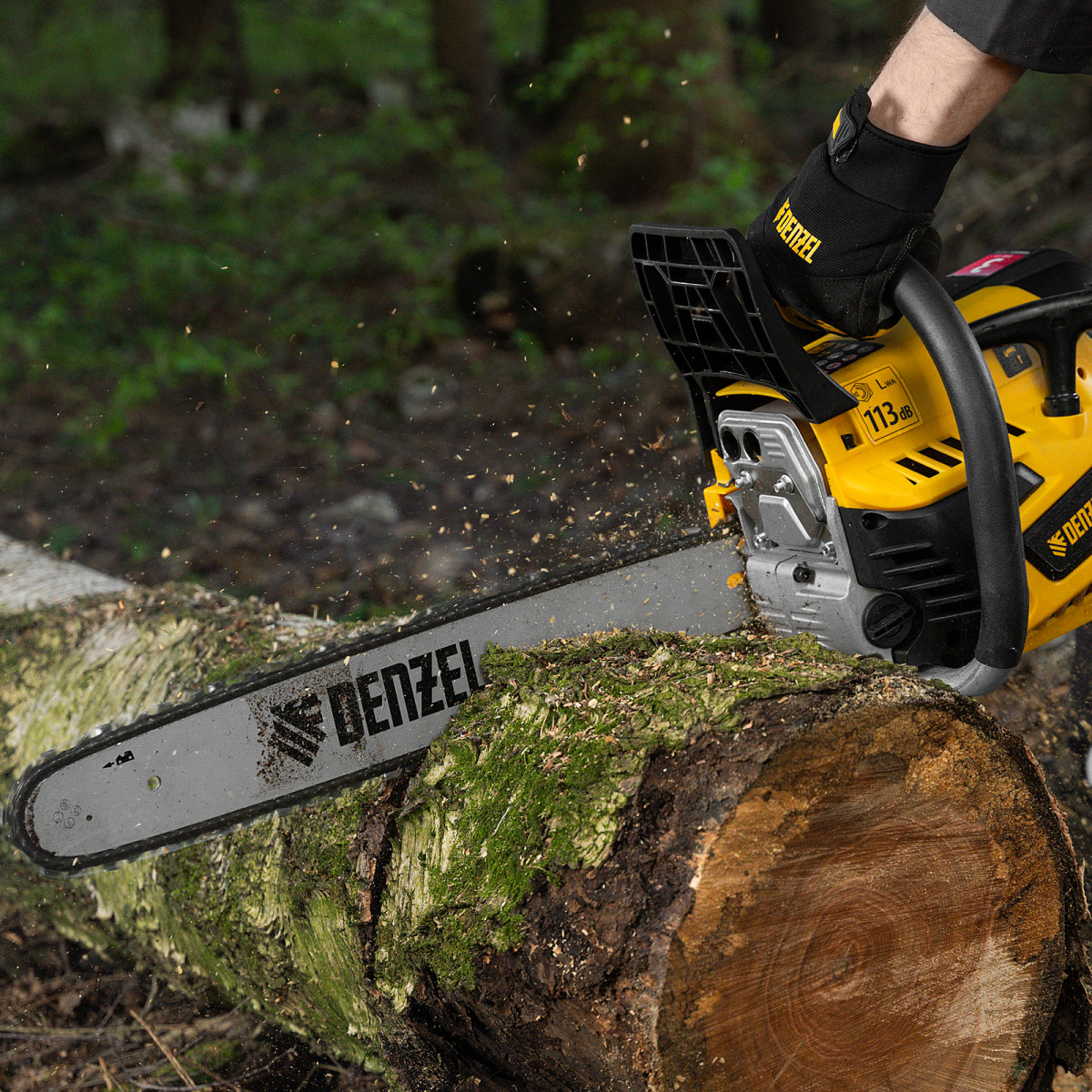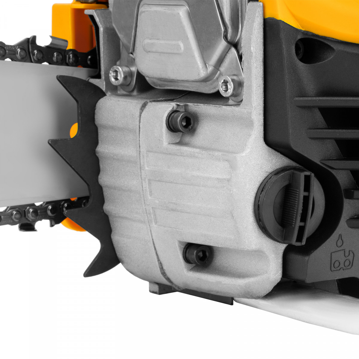 • Безопасная работа — блокировка от случайного запуска и моментальное срабатывание тормоза цепи при отскоке пилы снижают вероятность получения травм.