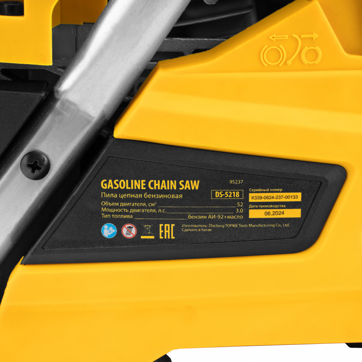 Пила цепная бензиновая Denzel DS-5218 95237 мощностью 3 л.с. оснащена двигателем объемом 52 см3 и поставляется с высокопроизводительной пильной гарнитурой: шиной длиной 45 см, цепью с 72 звеньями шагом 0,325" и пазом 1,5 мм. Используется для заготовки дров, распиловки древесины, при проведении ремонтных, строительных и садовых работ. Мощный и экономичный двухтактный двигатель позволяет эффективно и быстро решать поставленные задачи.