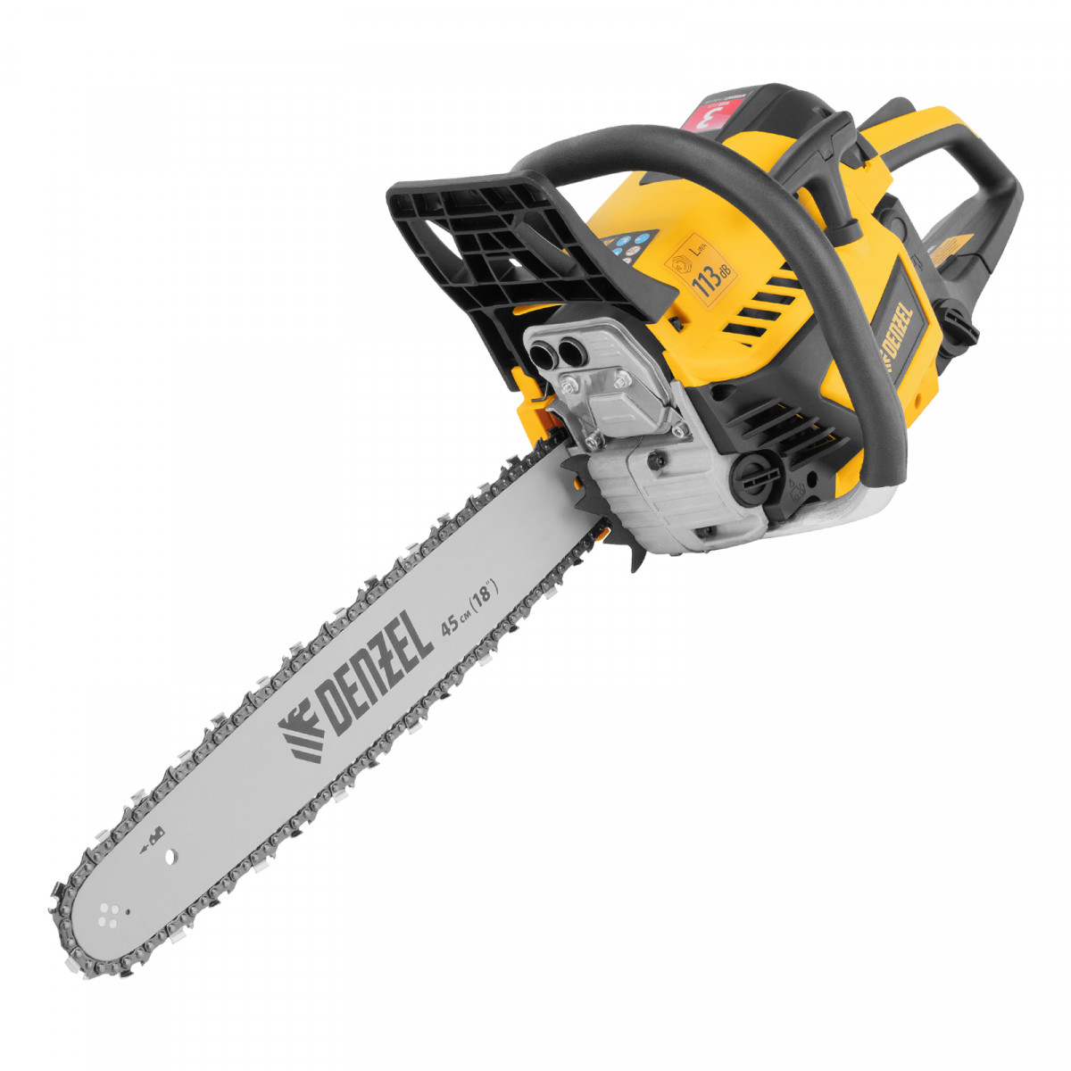 Пила цепная бензиновая DS-5218, шина 45 см, 52 см3, 3 л.с, шаг 0,325, паз 1,5 мм, 72 звена Denzel
