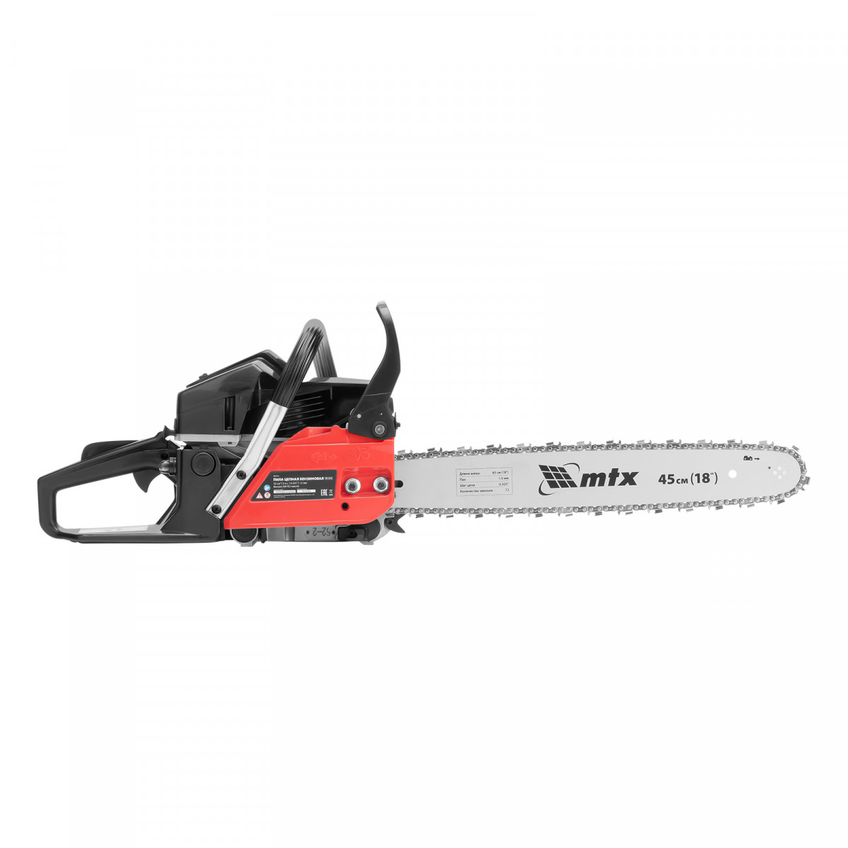 Пила цепная бензиновая MS-5218, шина 45 см, 52см³, 3 л.с., шаг 0,325, паз 1,5 мм, 72 зв MTX