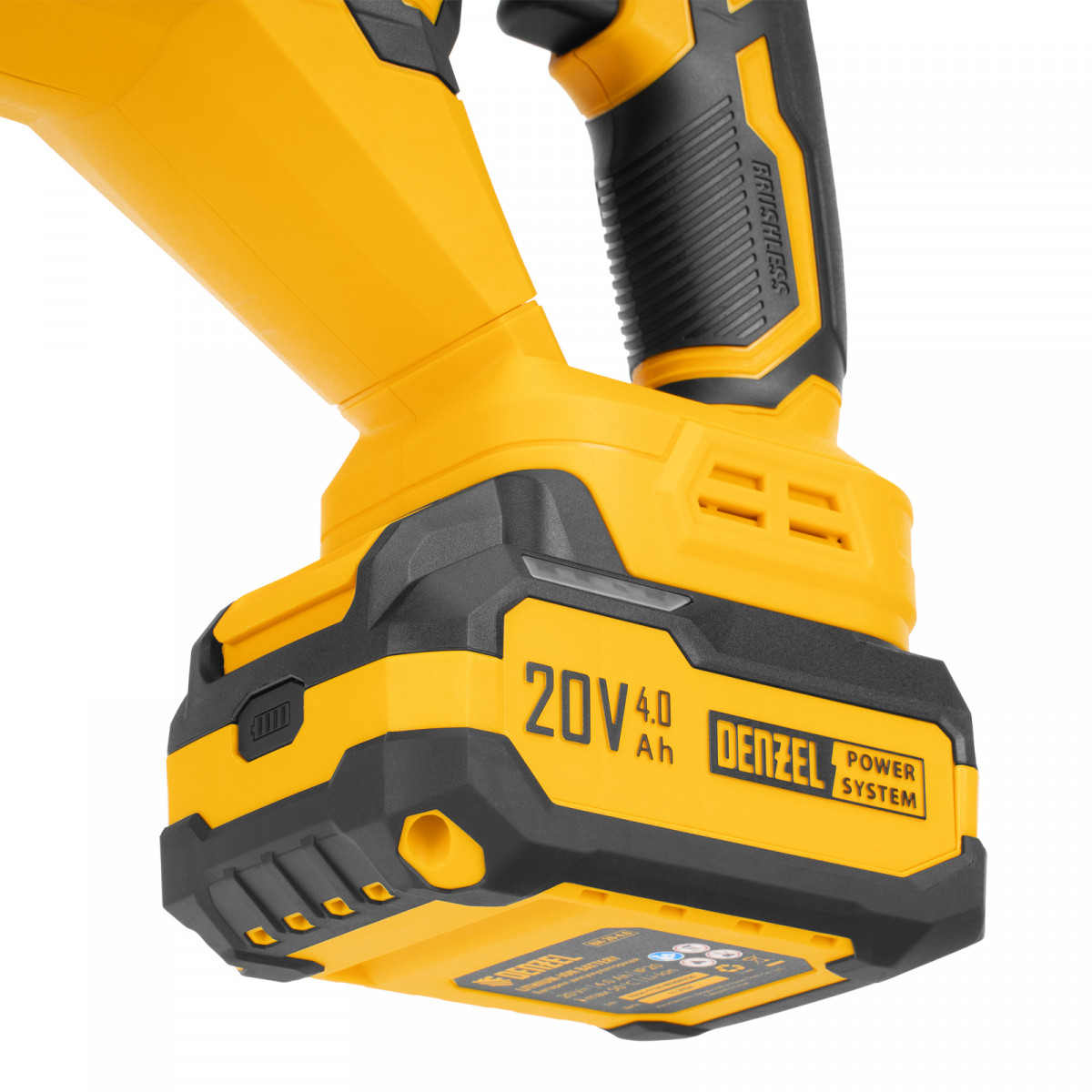 - Универсальность — аккумулятор совместим со всеми инструментами единой платформы Denzel Power System 20V.