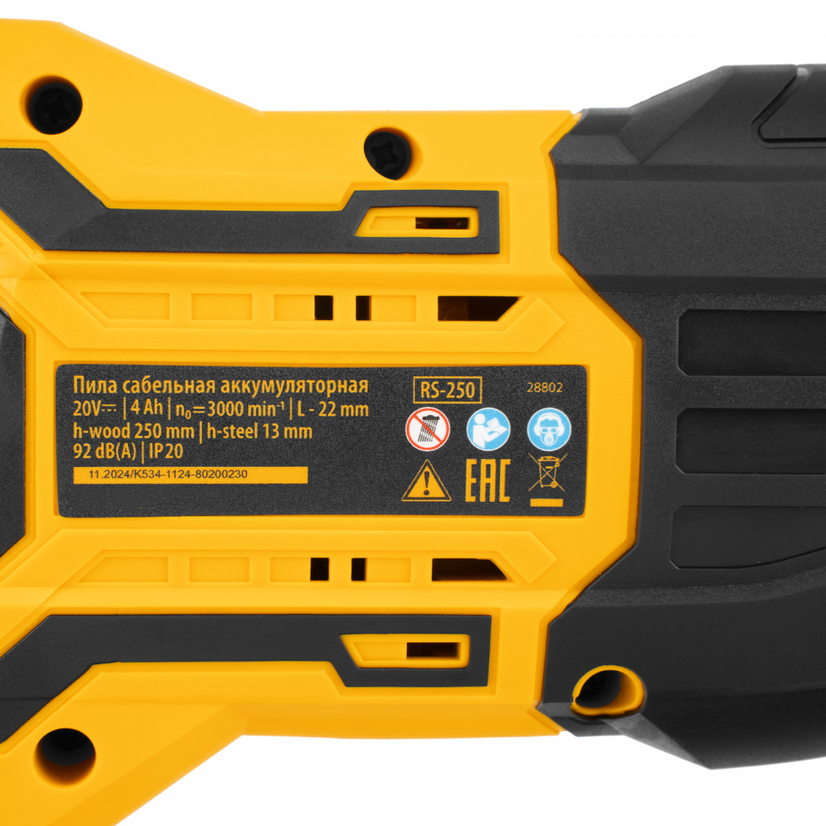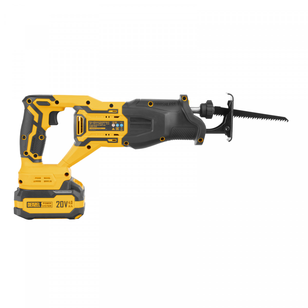 Пила сабельная аккумуляторная бесщет. RS-250, Li-Ion, 20 В Denzel