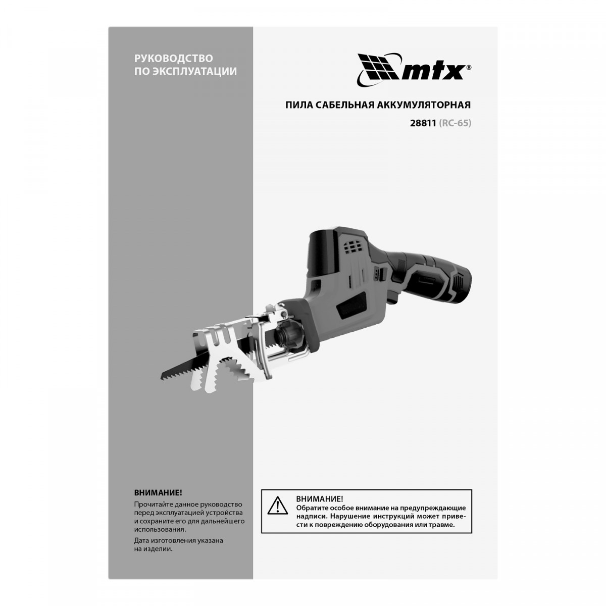 Пила сабельная аккумуляторная RС-65, Li-Ion, 12 В MTX
