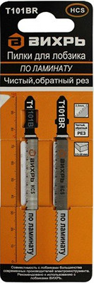 Пилки для лобзика Т101ВR по ламинату,чистый,обратный рез 100х75мм (2шт) Вихрь