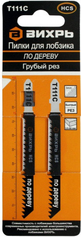 Пилки для лобзика Т111C по дереву,грубый рез 100х75мм (2 шт) Вихрь