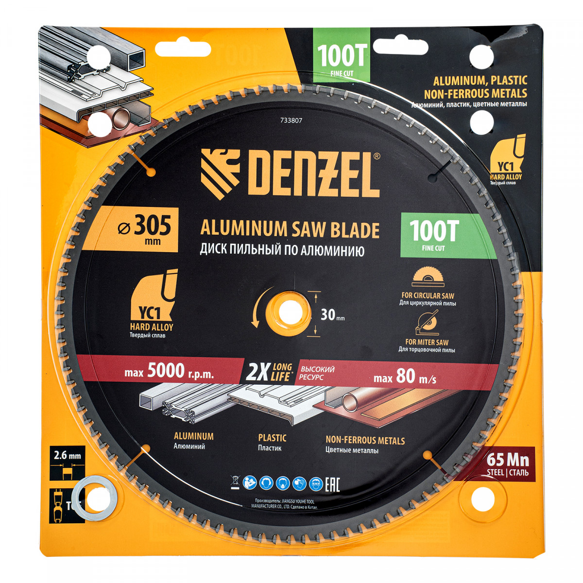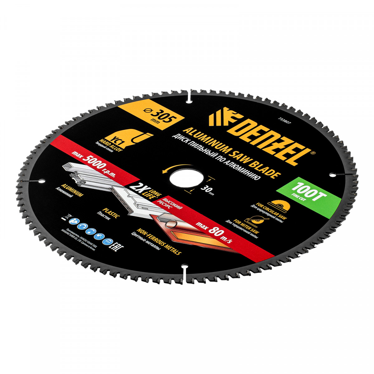 Пильный диск по алюминию ф305 х 30 мм, 100 зубьев Denzel