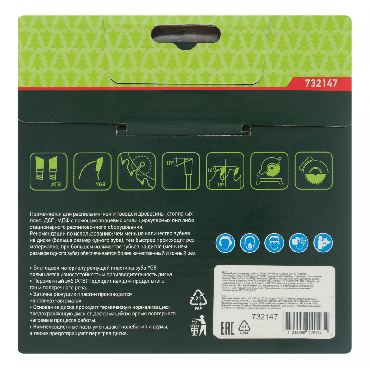 - Прочность и высокая производительность — основание диска изготовлено из стали 50, режущие пластины выполнены из твердого сплава YG8 и заточены с использованием алмазного абразива.