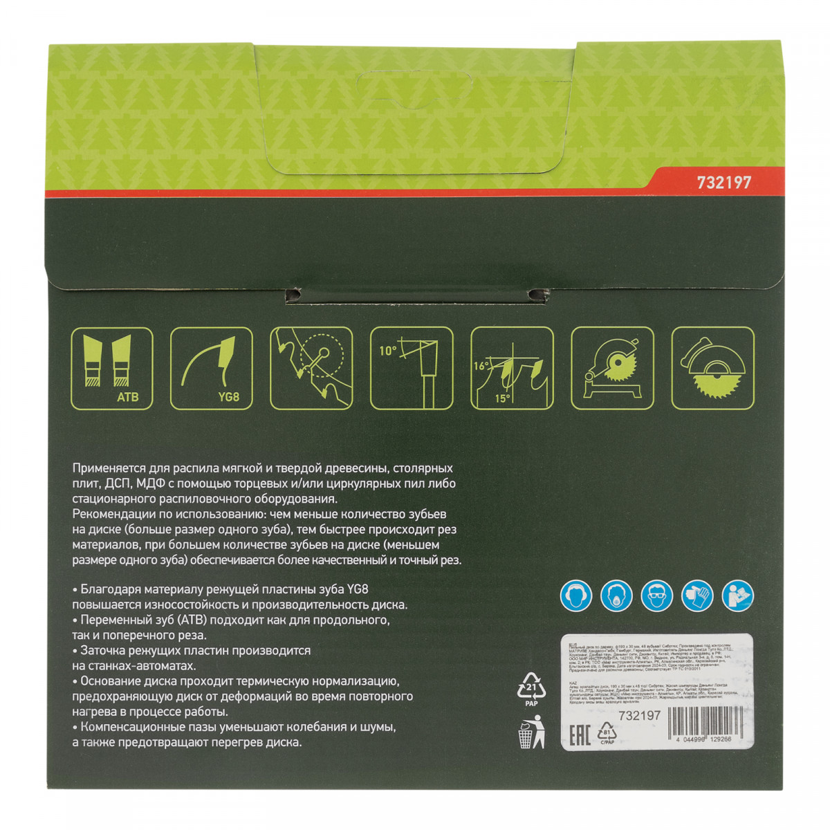 • Стабильно качественный рез — диск пилит быстро и ровно за счет попеременной заточки зубьев, компенсационные пазы защищают диск от деформации в результате нагрева, предотвращая его заклинивание.