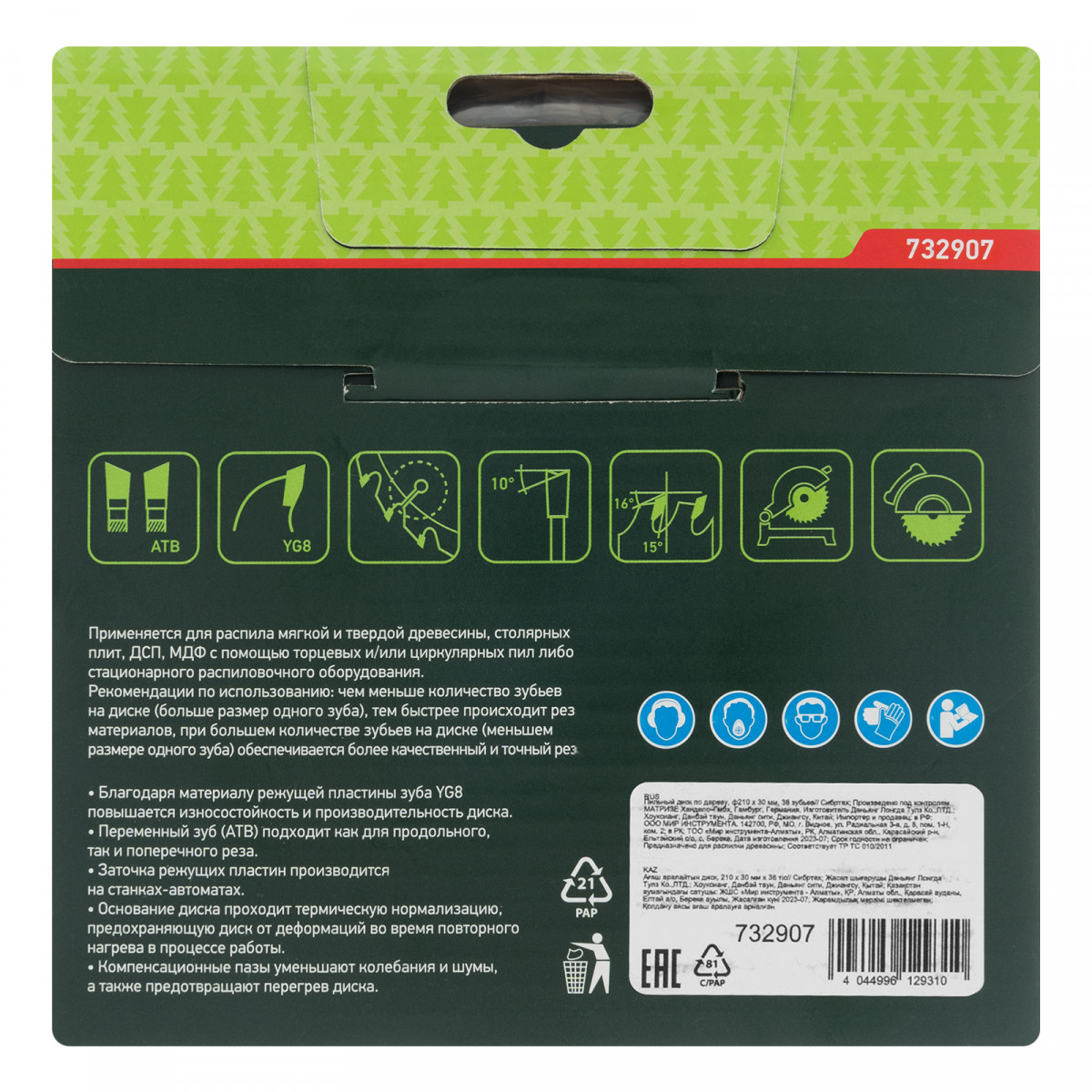 Пильный диск Сибртех 732907 диаметром 210 х 30 мм, с 36 зубьями, используется с торцовочными и циркулярными пилами, а также с распиловочными станками. Предназначен для продольного и поперечного пиления древесины мягких и твердых пород, фанеры, МДФ и ДСП. Благодаря средним зубьям достигается высокая скорость реза. Диск применяется для выполнения строительных, ремонтных работ, а также для решения бытовых задач.