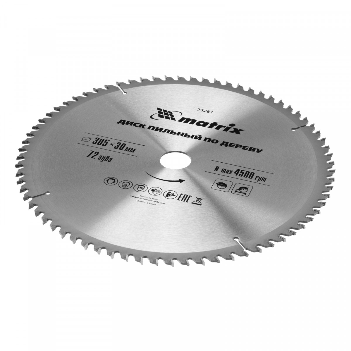 Пильный диск по дереву Matrix 73283 диаметром 305 х 30 мм, с 72 зубьями, — оснастка для циркулярных и торцовочных пил с соответствующим посадочным и внешним диаметром. Используется преимущественно для поперечного реза материалов из мягкой и твердой древесины, ДСП, ДВП, фанеры, столярных плит. Диск подходит для бытового и профессионального применения.