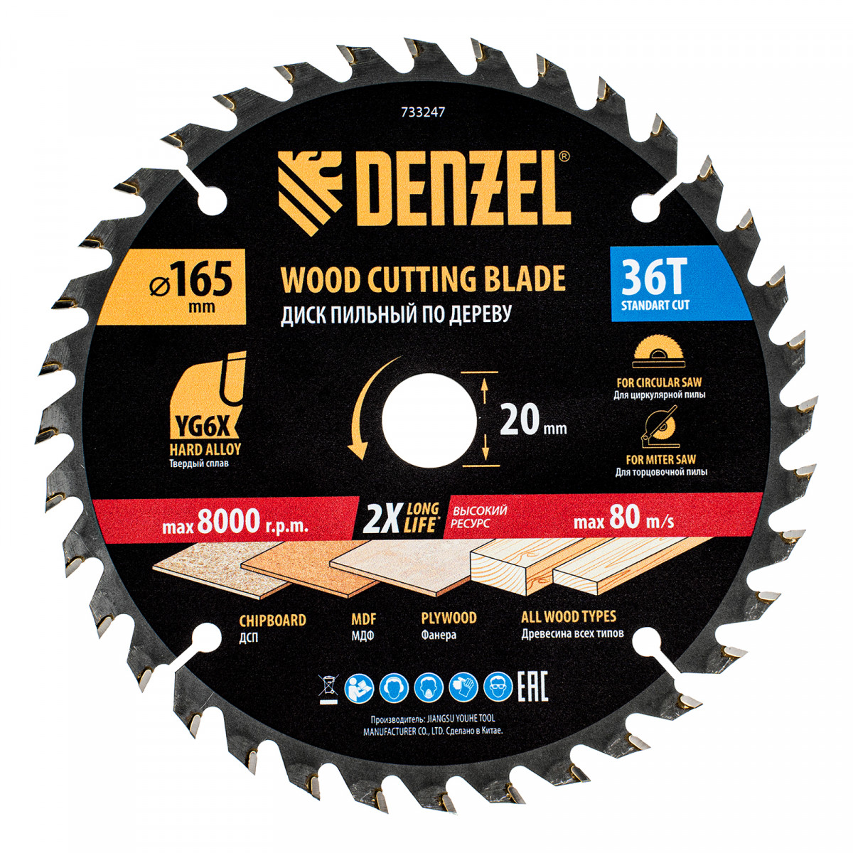 Пильный диск по дереву ф165 х 20 мм, 36 зубьев Denzel