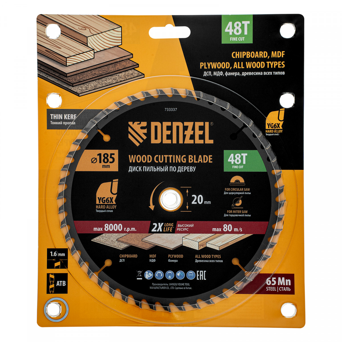 Пильный диск по дереву ф185 х 20 мм, 48 зубьев, тонкий Denzel