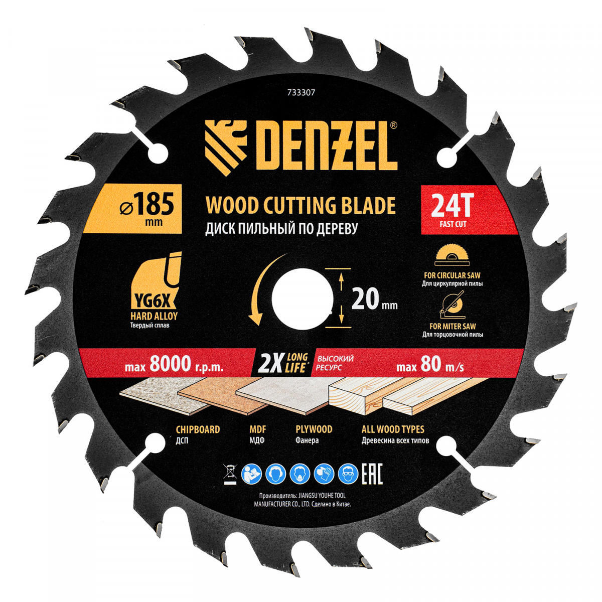Пильный диск Denzel 733307 диаметром 185 x 20 мм, с 24 зубьями, предназначен для продольного и поперечного распила твердой и мягкой древесины, фанеры, МДФ, ДСП. 24 зуба типа ATB с режущими пластинами оптимальной геометрии обеспечивают быстрый рез. Режущие пластины из твердого сплава YG6X сохраняют рабочие свойства при интенсивном использовании. Диск устанавливается на циркулярную, торцовочную пилу или на распиловочный станок. В комплект поставки входит переходное кольцо с 20 на 16 мм, что позволяет изменить посадочный размер и расширяет возможности использования диска.