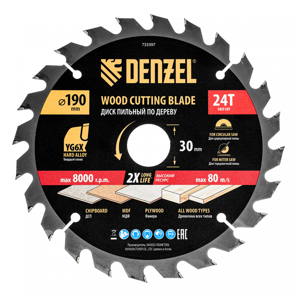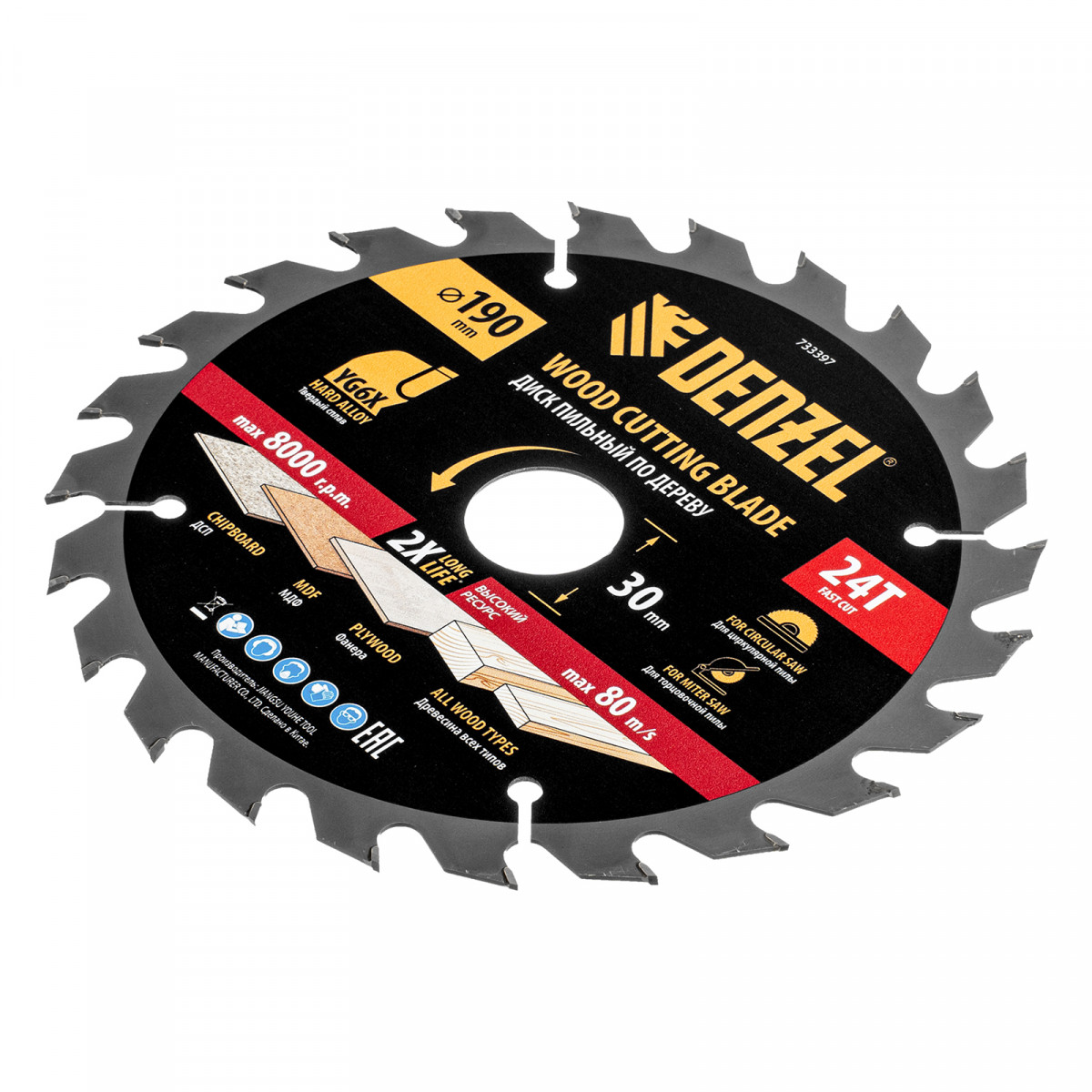 Пильный диск по дереву ф190 х 30 мм, 24 зубьев Denzel