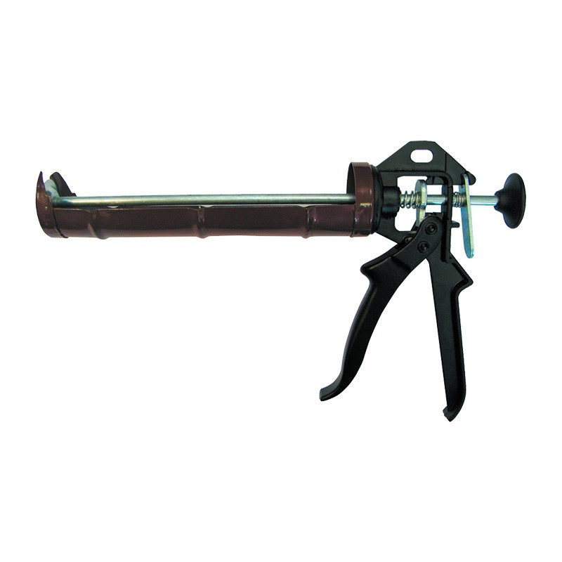 Усиленный полукорпусной пистолет для герметиков 9"  60107 оснащен круглым штоком и имеет усиленную конструкцию для увеличения срока эксплуатации. Предназначен для выдавливания специальных составов из стандартных туб 310 мл при монтажных работах.