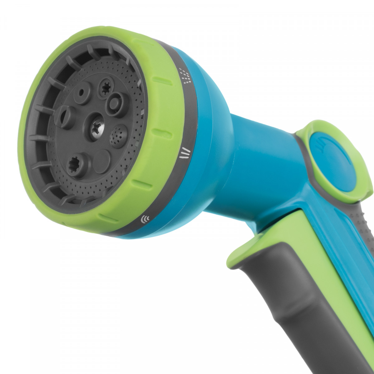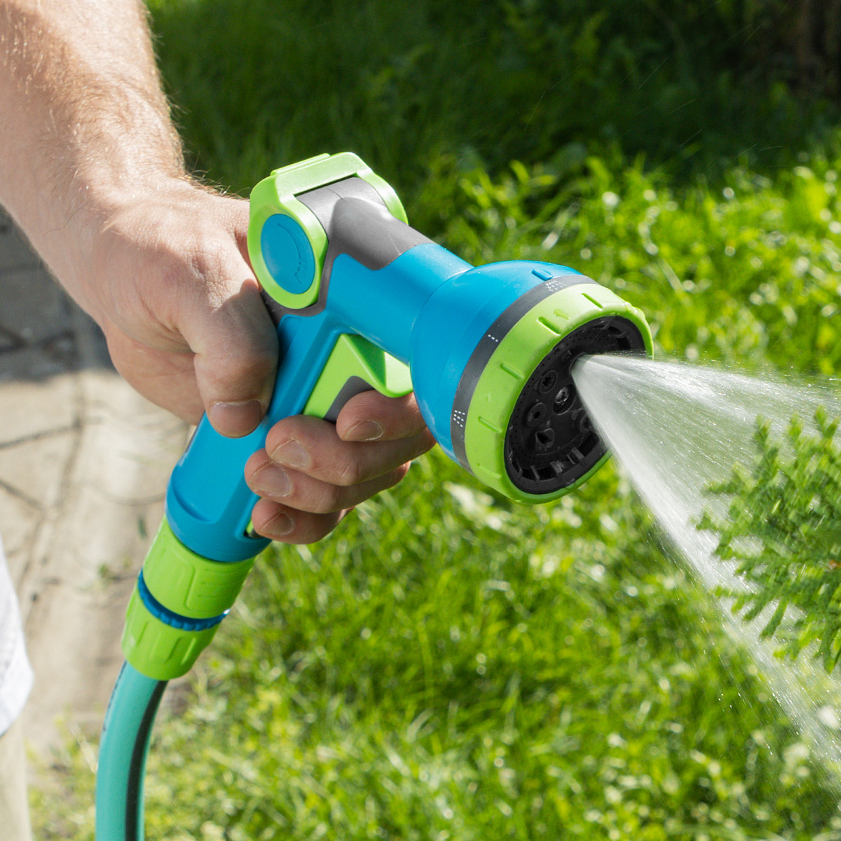 • 8 режимов полива — конусный, вертикальный и горизонтальный, душ, жесткая струя, веер, туман, а также полный полив.