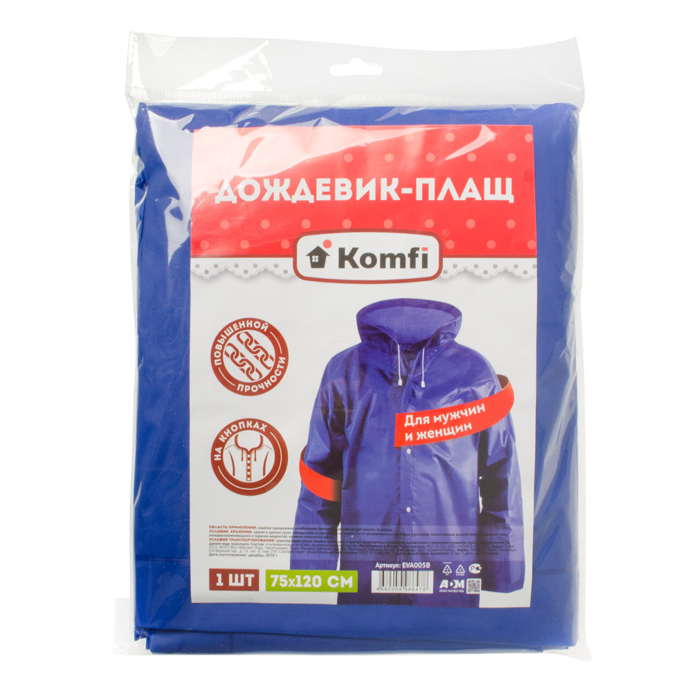 Плащ EVA005В с капюшоном (на кнопках) Komfi/50 цвет в ассортименте