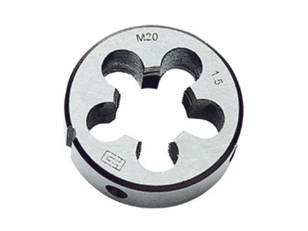 Плашка изготовлена из инструментальной стали. Твердость режущих кромок 60 HRc, что соответствует требованиям ГОСТа (ГОСТ 60–62 HRc). Используется для нарезания внешней резьбы.