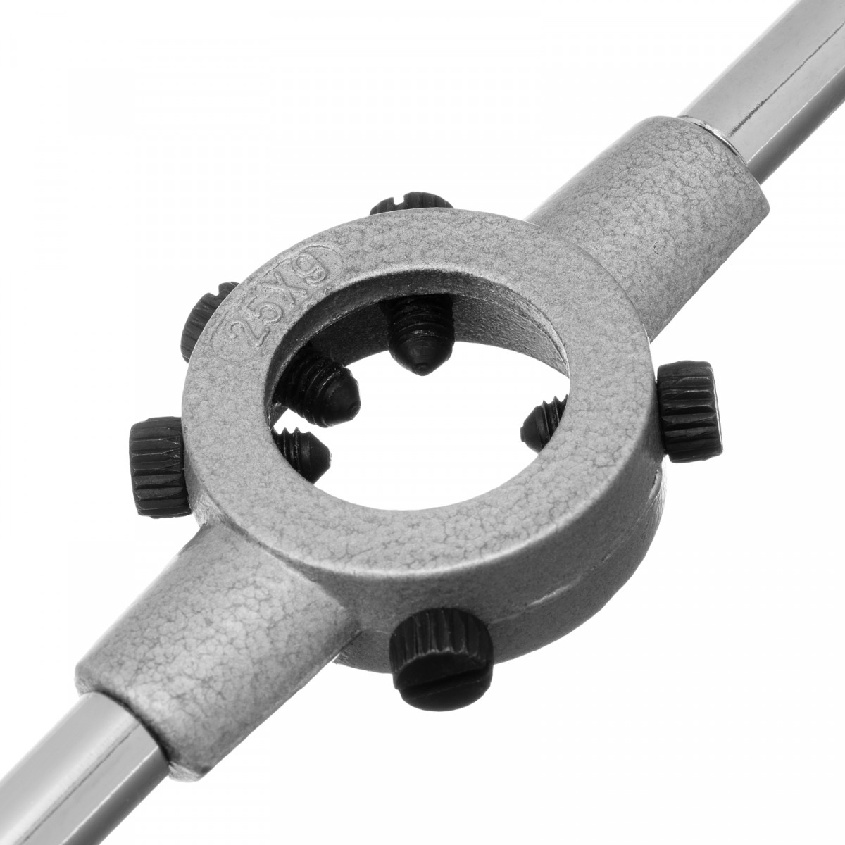 Плашкодержатель Сибртех 77425 предназначен для захвата плашек диаметром 25 мм. Пригодится для ручного нарезания резьбы при проведении слесарных и монтажных работ. Плашкодержатель позволяет приложить необходимое усилие для создания ровной резьбы.