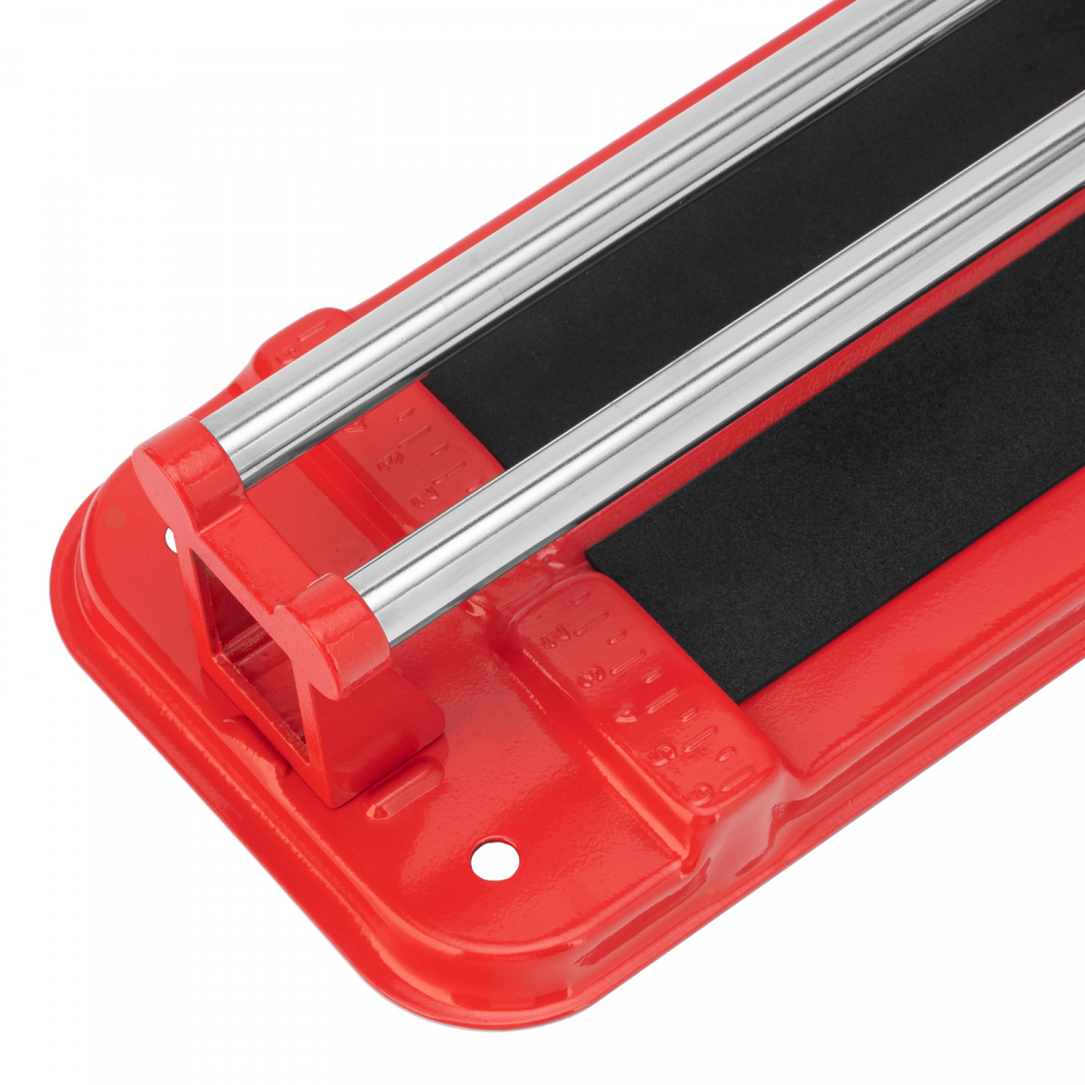 • Высокое качество работы — стальное основание обеспечивает устойчивость плиткореза, мягкие амортизирующие накладки предотвращают смещение плитки.