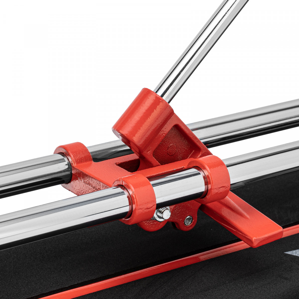 - Высокое качество работы — стальное основание обеспечивает устойчивость плиткореза, мягкие амортизирующие накладки предотвращают смещение плитки.