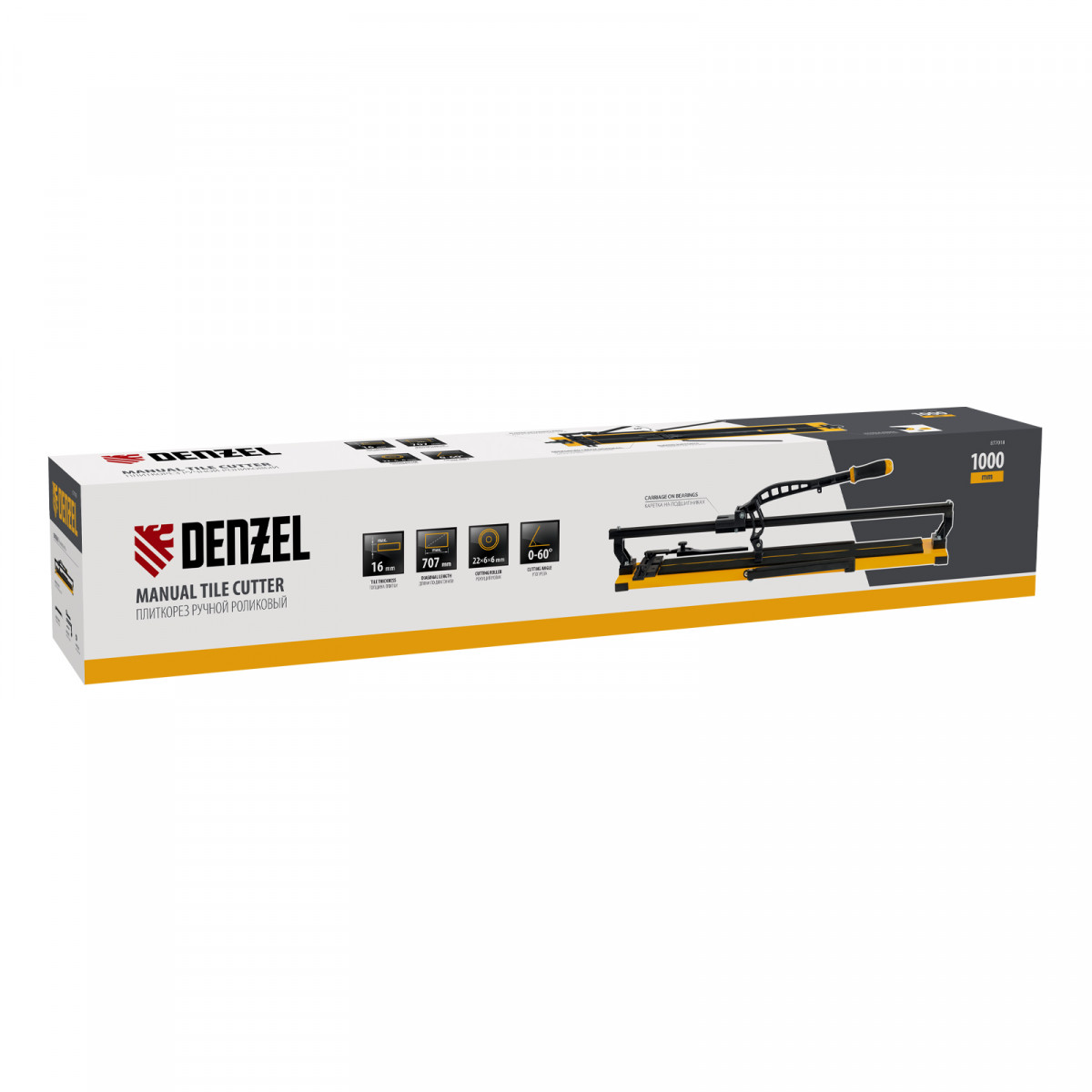 Плиткорез рельсовый 1000х16мм, каретка на подш., стальная станина, усил. рукоятка-пенал Denzel
